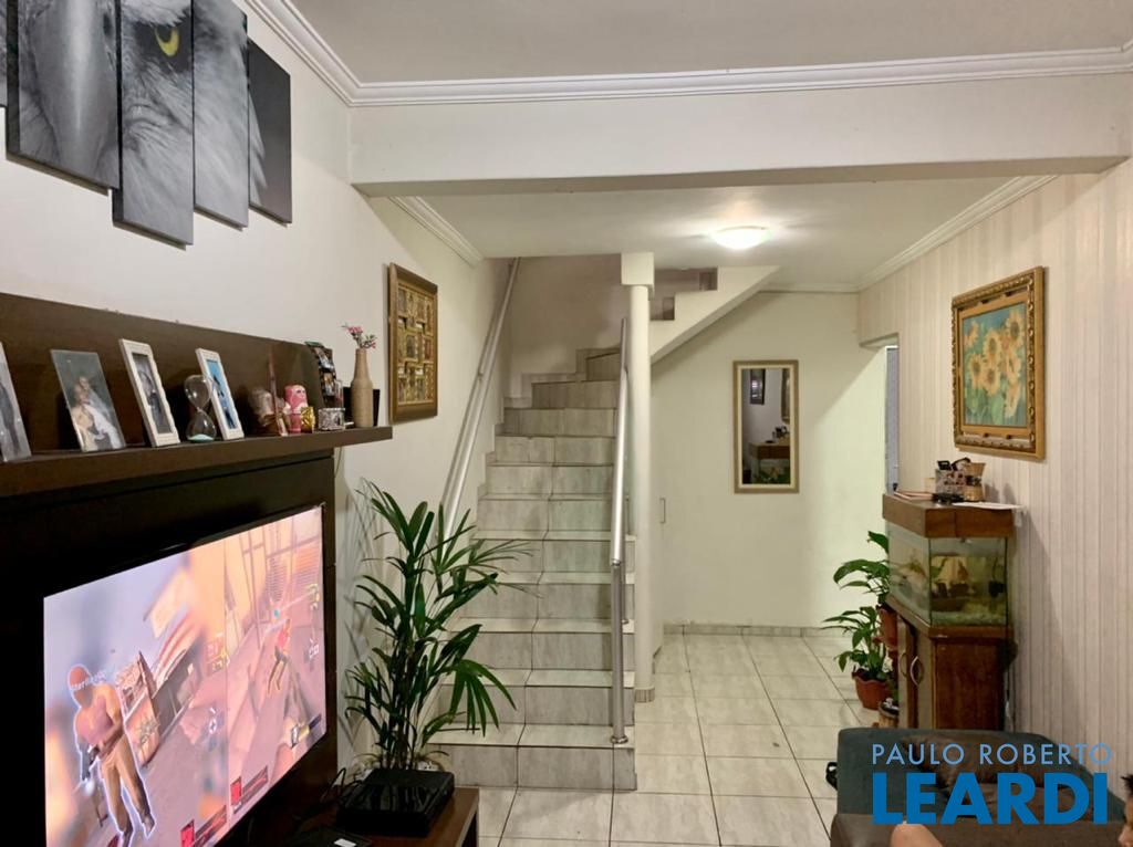Sobrado frontal com 110 metros quadrados de área construída muito bem distribuído em: Três dormitórios, o dormitório principal dispõe de ar condicionado, sala de estar muito aconchegante e moderna, cozinha com planejados, dois banheiros com box de vidro, área de serviço recém reformada com teto retrátil de vidro com motor automático, quintal e duas vagas de garagem cobertas dispondo de portão automático. Acabamento fino de alto padrão em todos os ambientes.