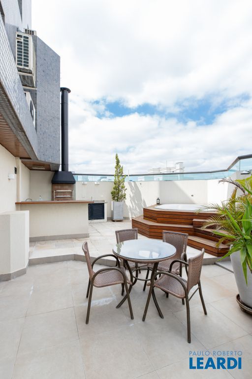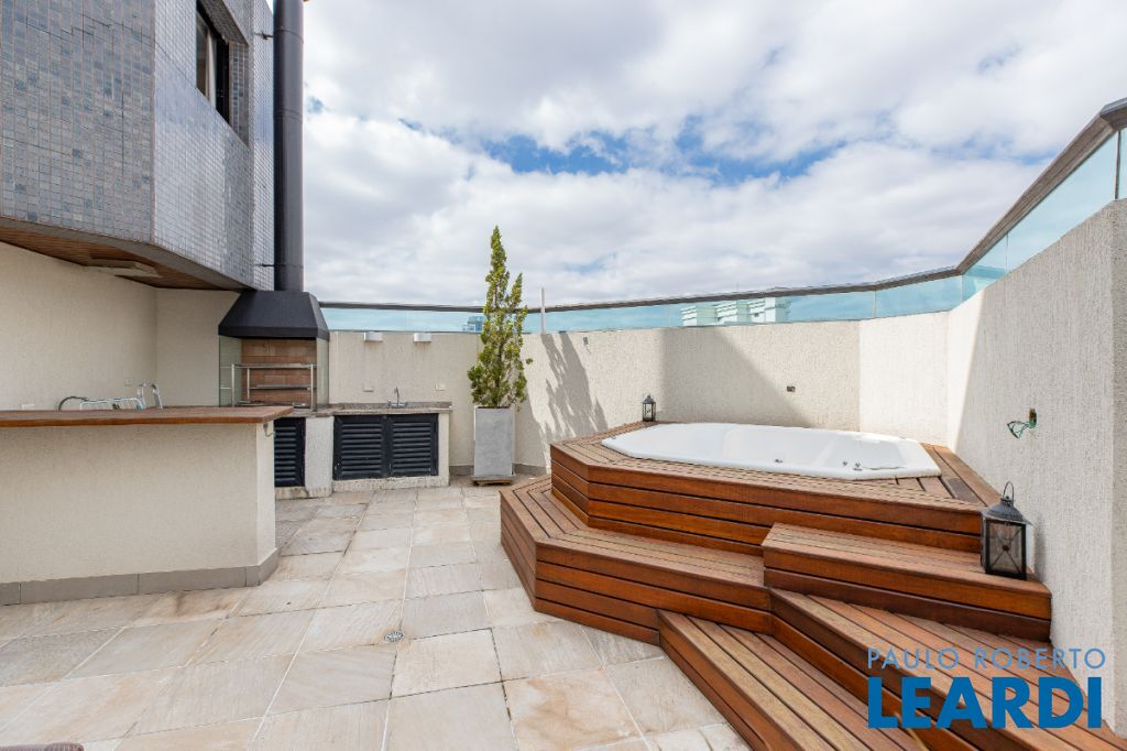 A cobertura conta com uma série de comodidades de alto padrão, como ar-condicionado, banheira de hidromassagem, churrasqueira e jacuzzi, ideal para momentos de lazer e relaxamento. Além disso, possui 3 vagas de garagem, oferecendo praticidade e segurança para os moradores. O piso em madeira confere ainda mais elegância e sofisticação ao ambiente, tornando o imóvel ainda mais charmoso e aconchegante.