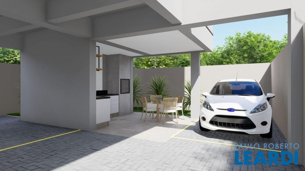 1 vaga para auto, portão com controle, área gourmet, vaga para visitante.