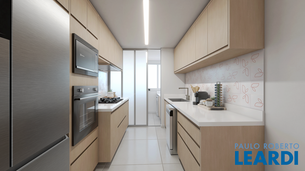 Os acabamentos seguem as tendências atuais, com tons neutros nos banheiros (revestidos com Highlands Snow, da Portobello) e o charmoso azulejo Sabiá Terracota, da Mica, no backsplash da cozinha.