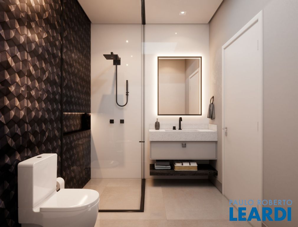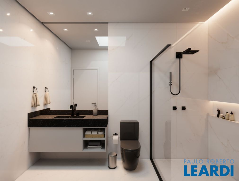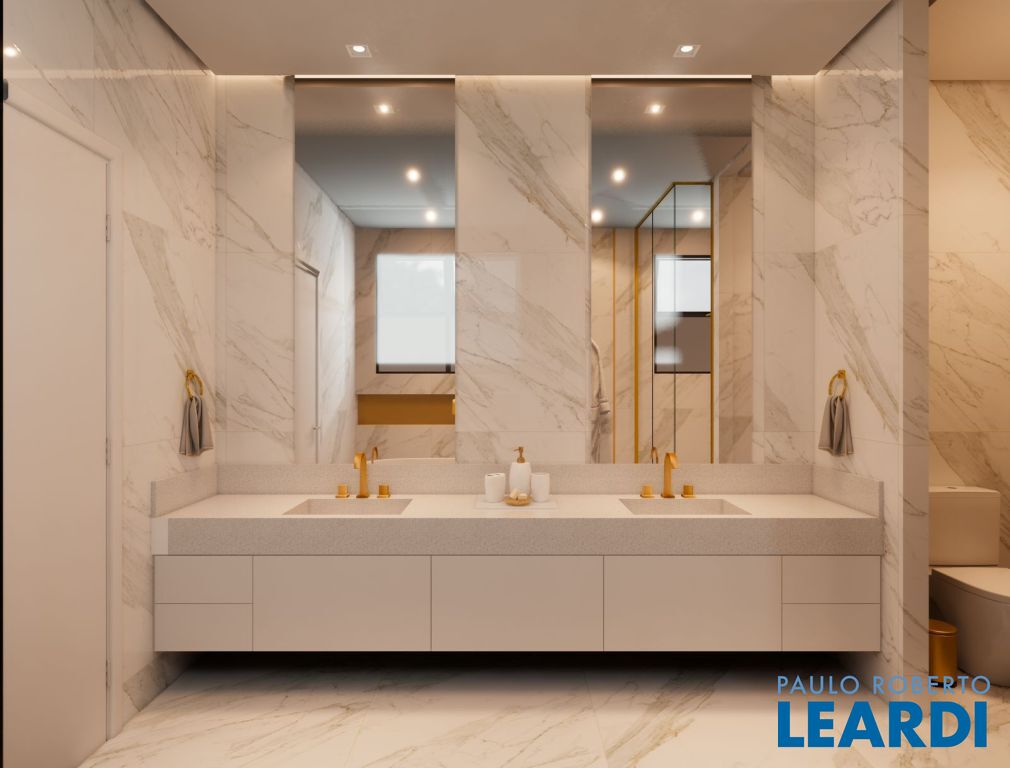 Acabamentos com mármores, porcelanatos Decortiles de grandes dimensões (2,40x1,20), louças e metais Deca