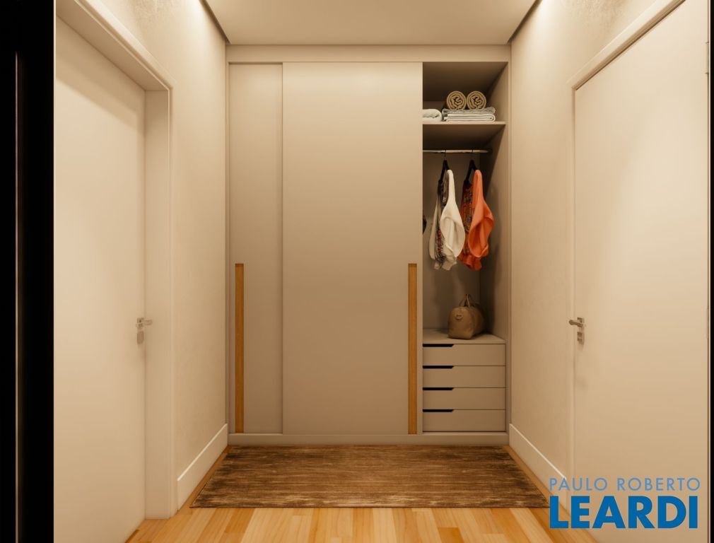 Copinha e roupeiro no pavimento superior com móveis planejados
