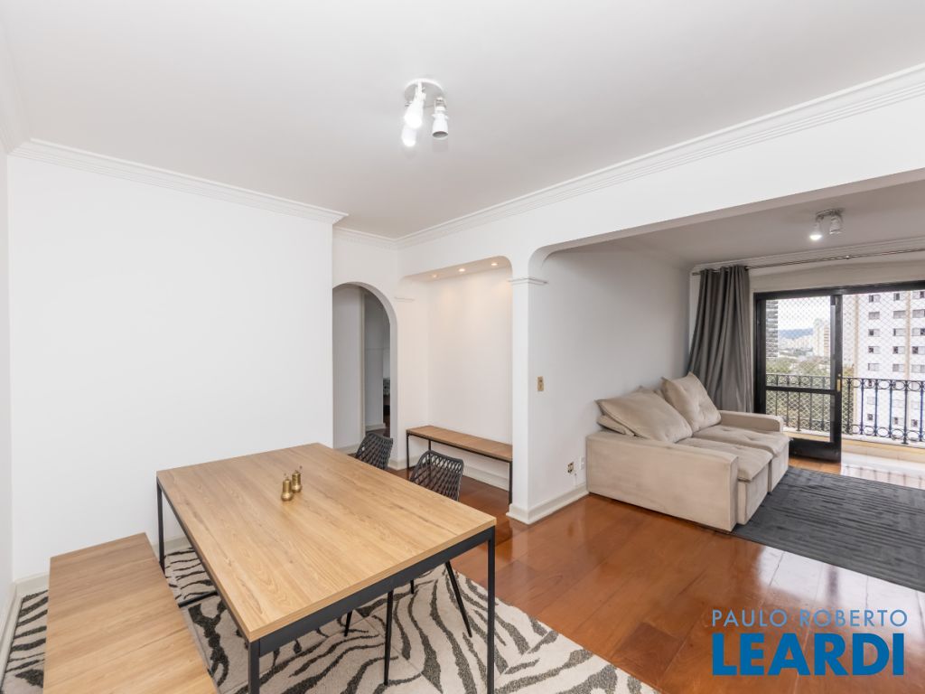 103m2 distribuídos em living para dois ambientes, sacada com vista permanente, 3 dormitórios, sendo 1 suíte, banheiro social, cozinha, área de serviço com banheiro, quarto pequeno extra que pode servir de escritório e 2 vagas de garagem cobertas.