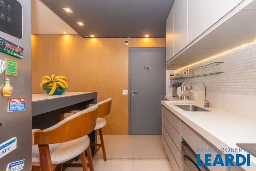 O condomínio oferece piscina adulto com deck e solário, piscina infantil, spa, sauna, academia, quadra recreativa, sala de jogos, brinquedoteca, playground, salão de festas, espaço gourmet, bicicletário, espaço pet, portaria 24h e segurança.