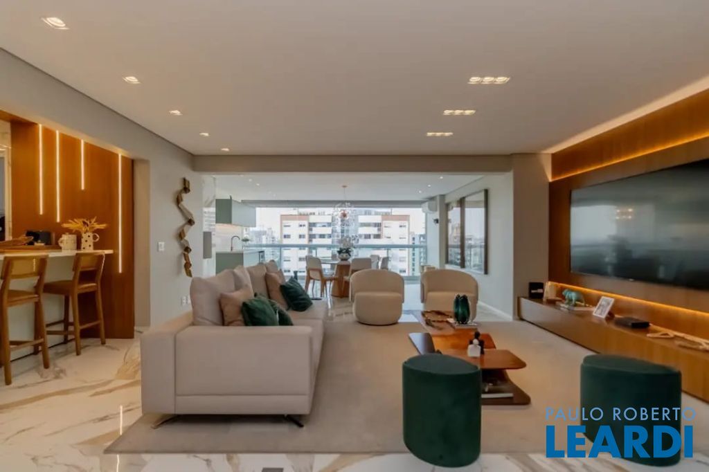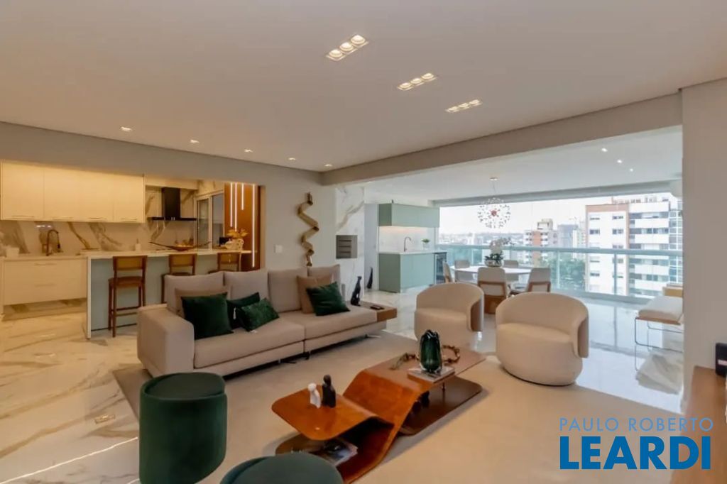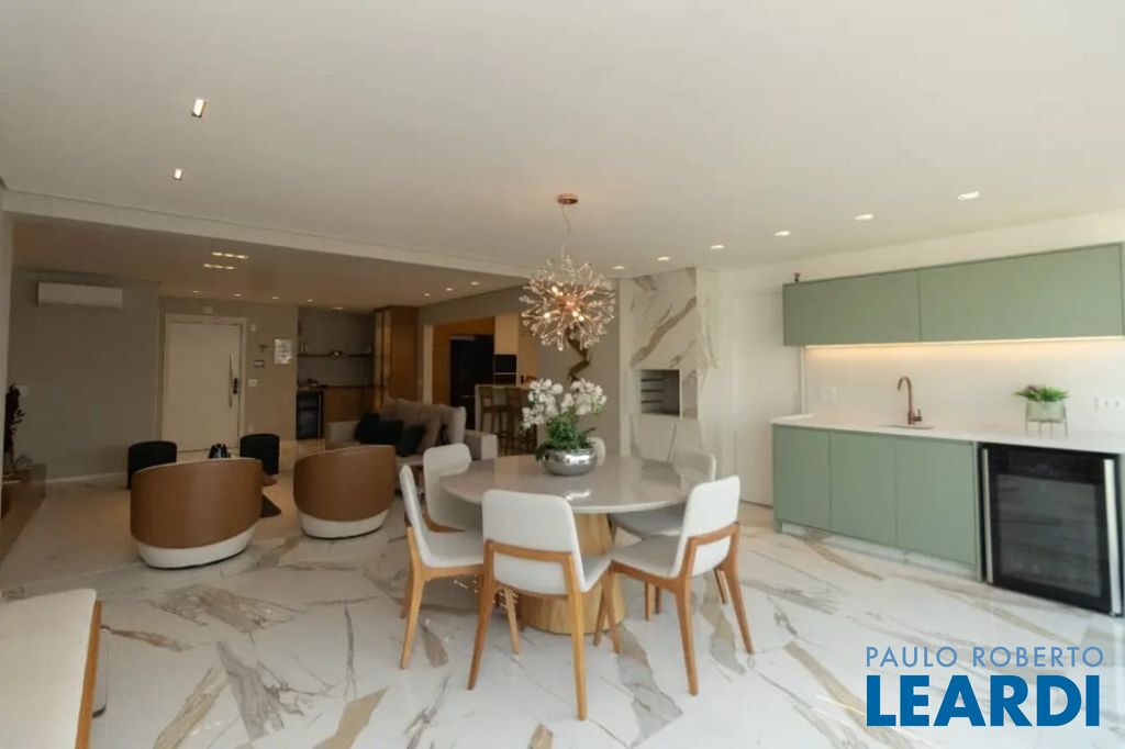 Sofisticado e elegante apartamento de 165 m2 à venda com porteira fechada, ou seja, totalmente mobiliado e decorado em andar alto e com vista livre. Conta com 2 suítes, incluindo uma master, sala ampla para 2 ambientes generosos, estar com tv e jantar, sacada com churrasqueira, lavabo, cozinha americana, lavanderia espaçosa, wc funcional, elevador privativo e 3 vagas de garagem e v