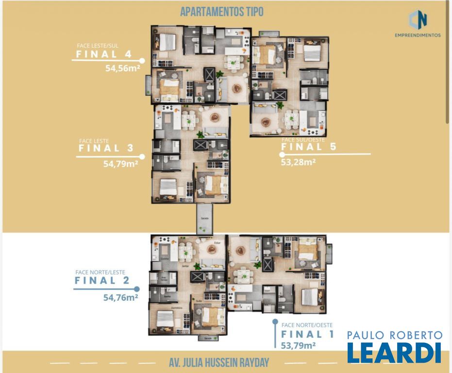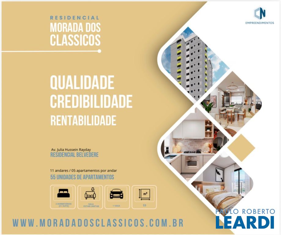 São apenas 55 UNIDADES DE APARTAMENTOS em 11 andares, cada andar com 5 unidades de apartamentos a partir de 53m², sendo;