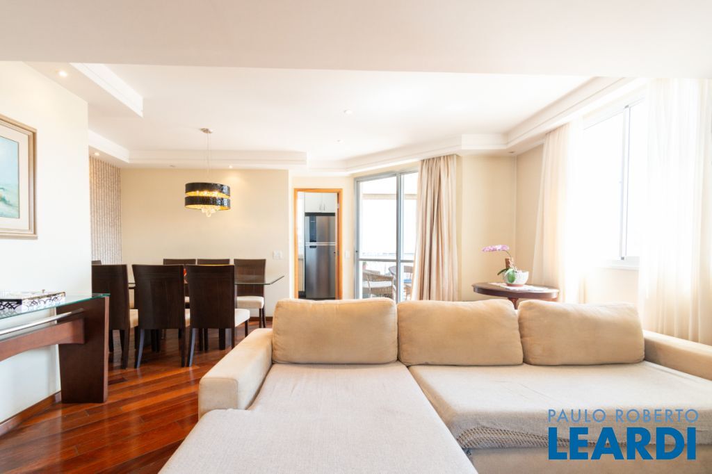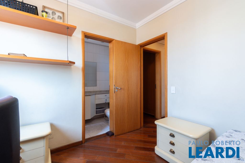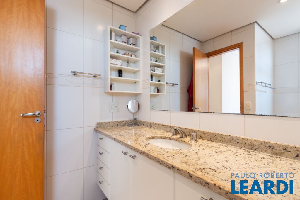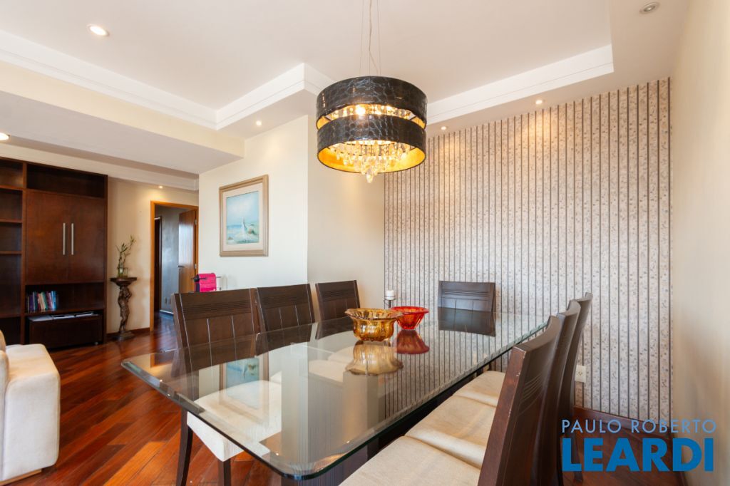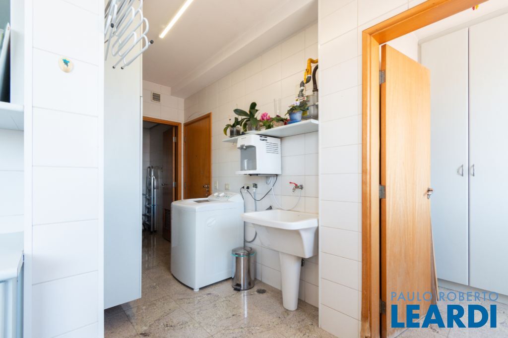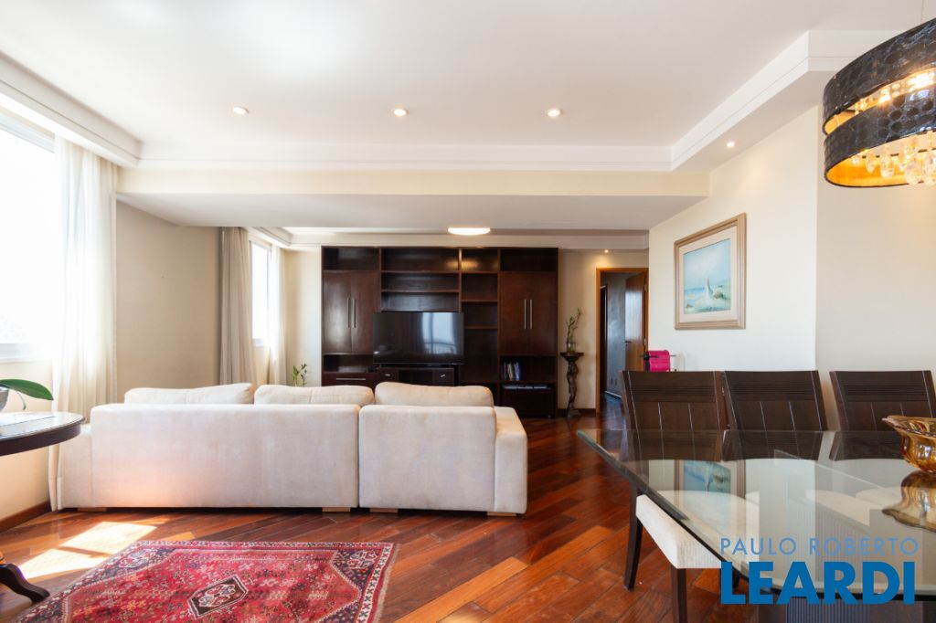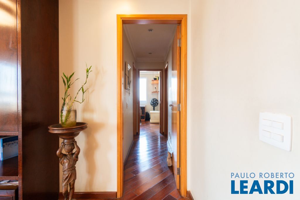 Com três quartos e cinco banheiros, o apartamento é ideal para famílias que buscam conforto e espaço. Conta ainda com closet e móveis planejados, garantindo praticidade e uma estética harmoniosa. O piso em madeira agrega sofisticação aos ambientes.