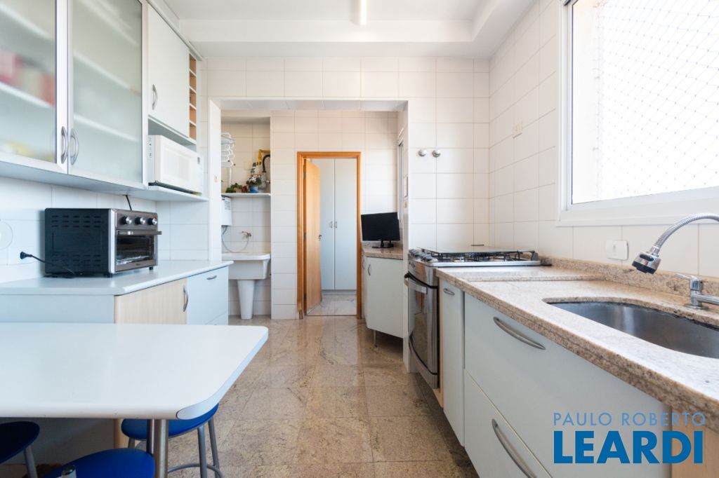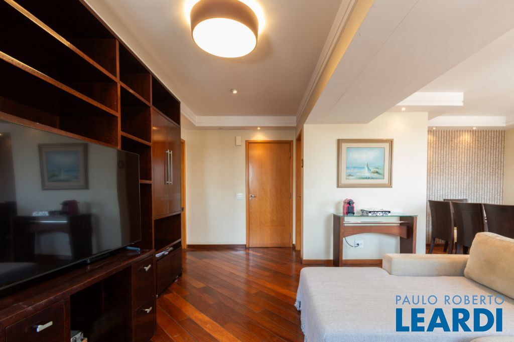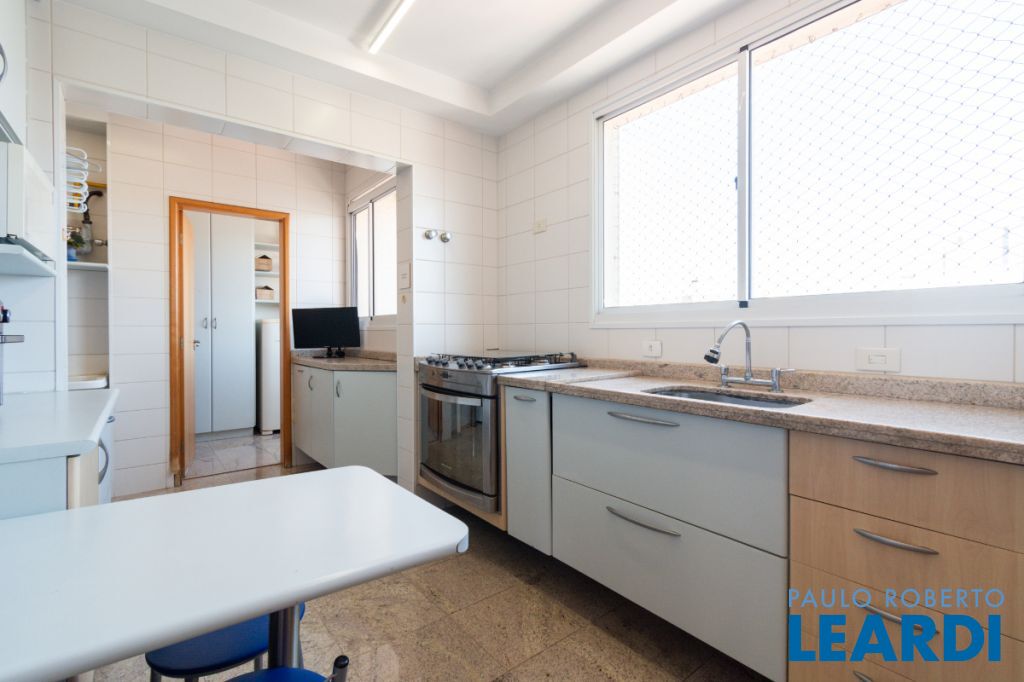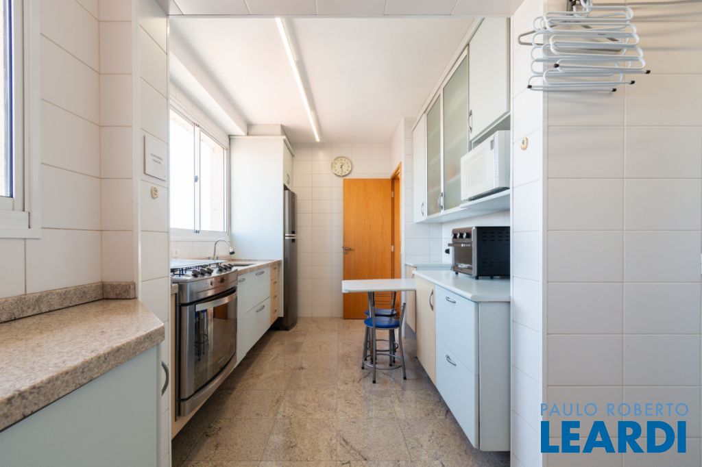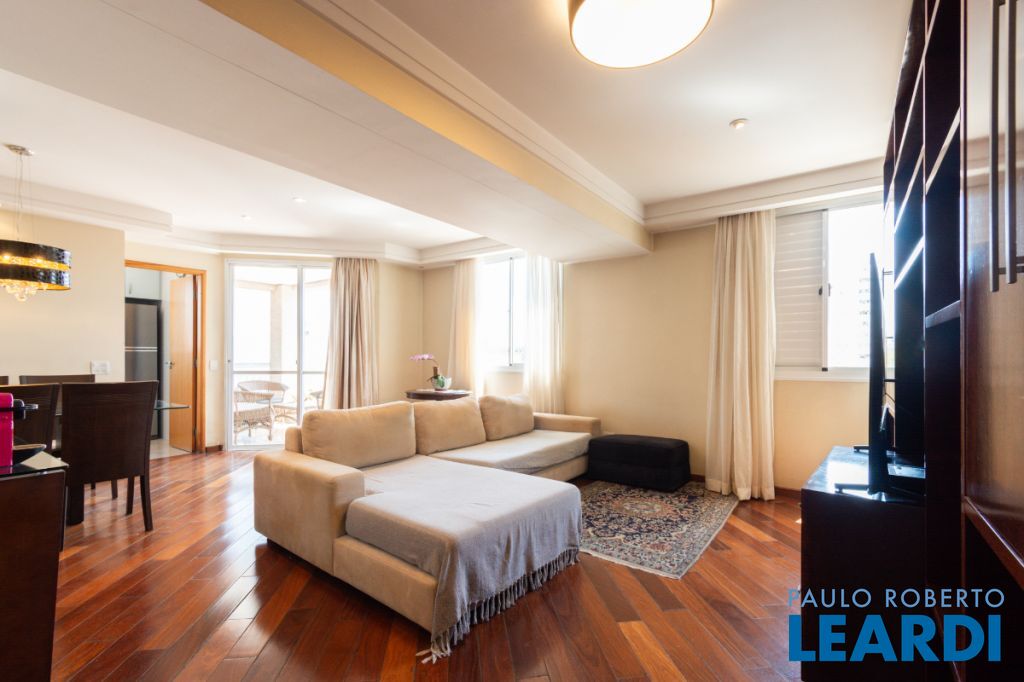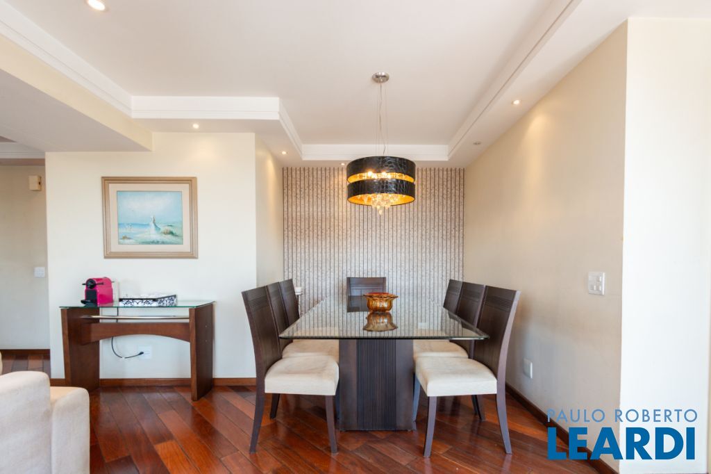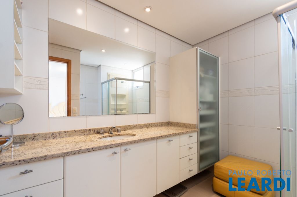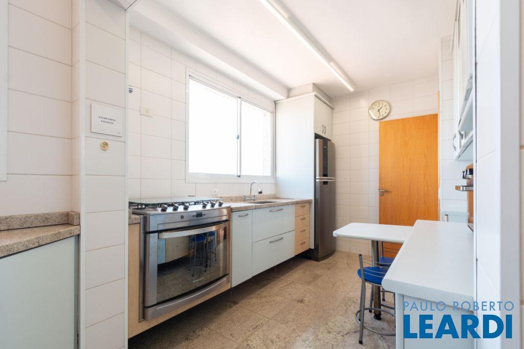 Com três quartos e cinco banheiros, o apartamento é ideal para famílias que buscam conforto e espaço. Conta ainda com closet e móveis planejados, garantindo praticidade e uma estética harmoniosa. O piso em madeira agrega sofisticação aos ambientes.