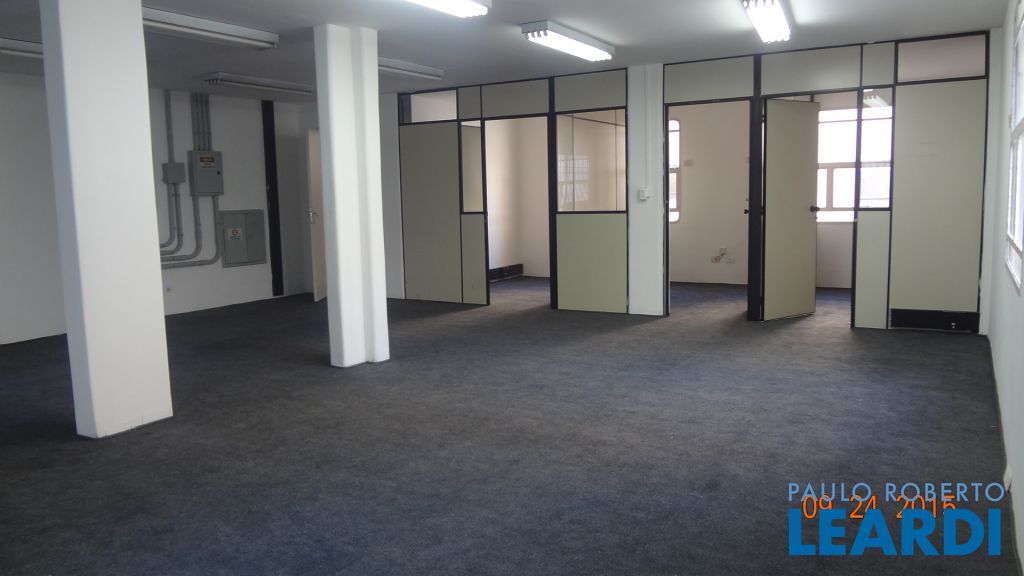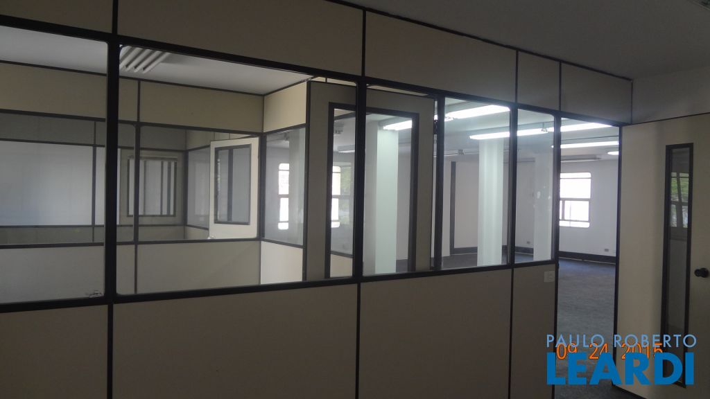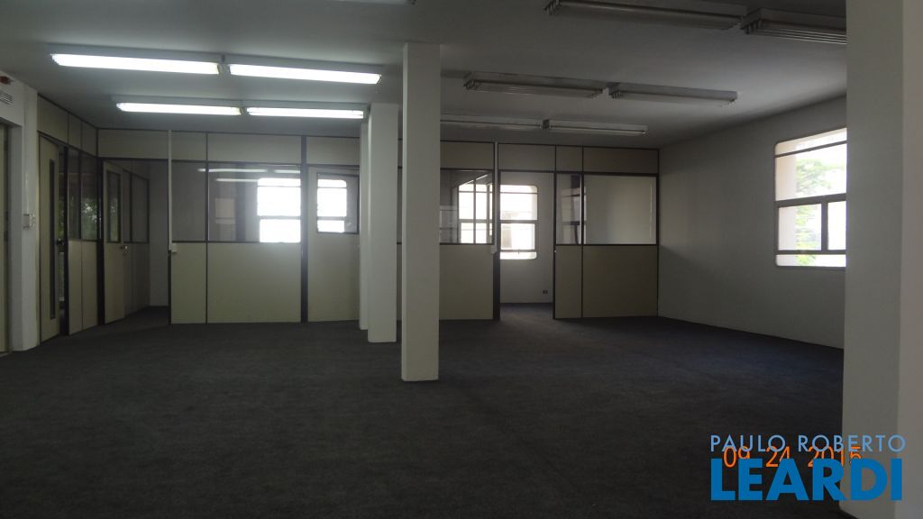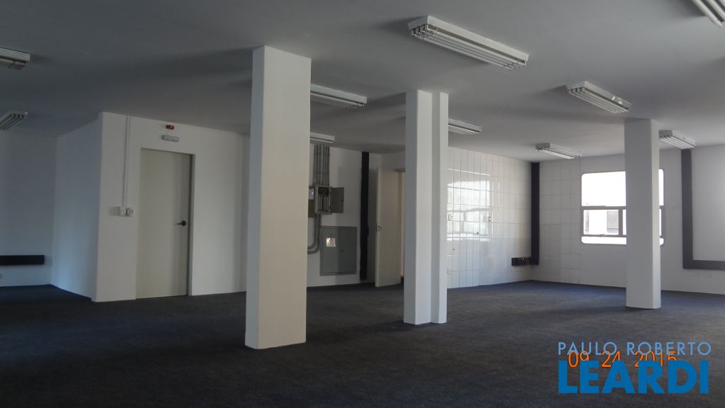 Prédio comercial (monousuário) com 1.235² de área útil em 2 blocos (A e B) cada um com 5 andares de aproximadamente 130 m², a maioria em vão livre, com 2 banheiros cada. A sala do térreo tem 47 m². Piso revestido de carpete, forro de gesso com luminárias sobrepostas, em bom estado de manutenção, elétrica atualizada, área comum no piso térreo com recepção, sala multiuso, copa e estacionamento para um total de 18 veículos.