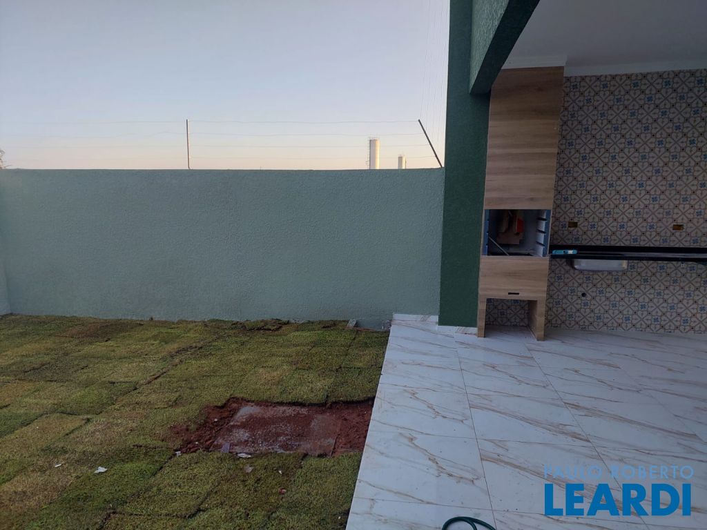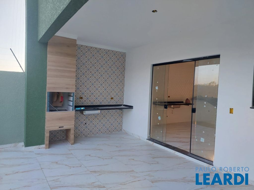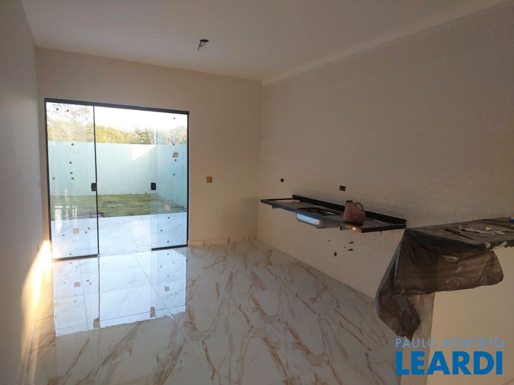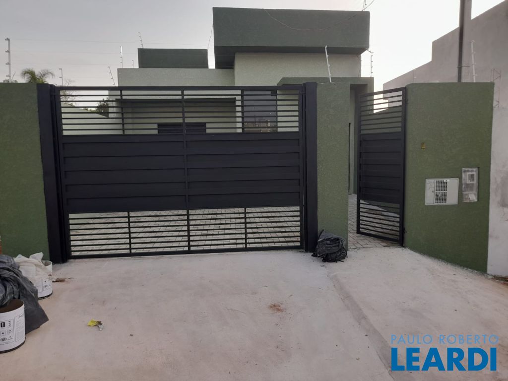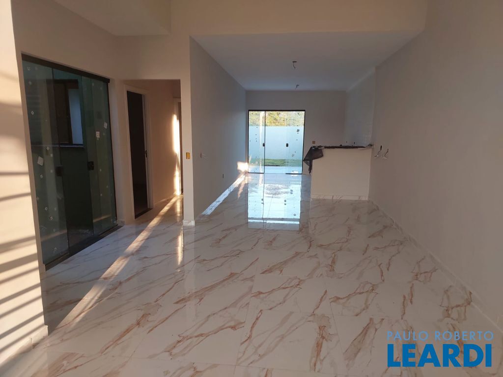 A casa tem 3 dormitórios, sendo 1 suíte, cozinha, sala de estar integrada a sala de jantar, área gourmet e garagem para 2 carros.