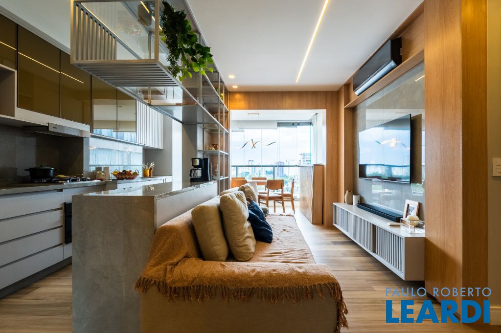 Cada detalhe foi pensado para unir conforto, estilo e funcionalidade. A marcenaria sob medida está presente em praticamente todo o apartamento, garantindo sofisticação e aproveitamento inteligente dos espaços.