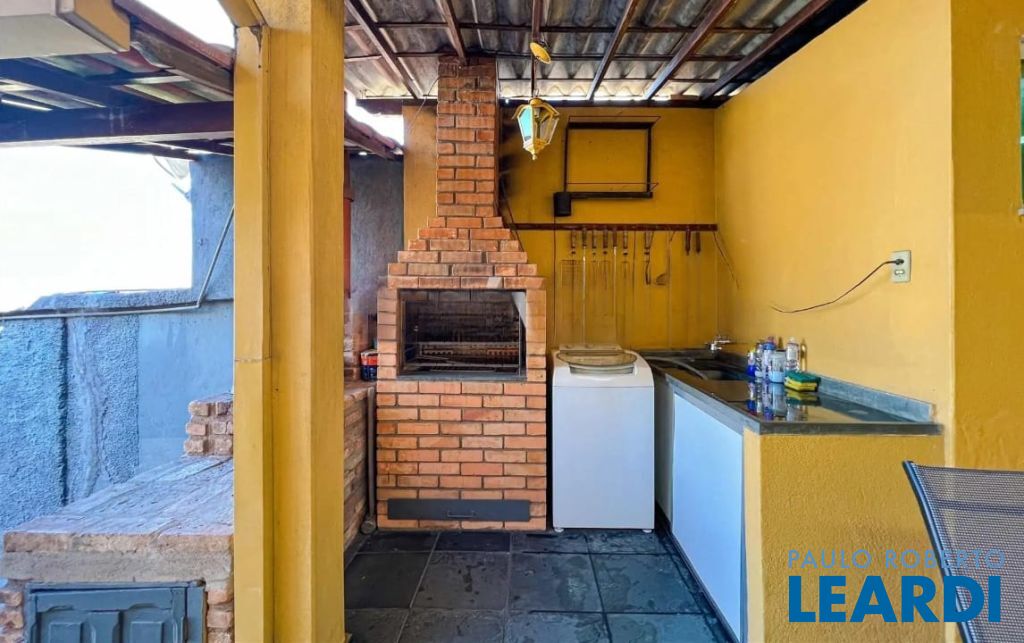 Quintal com área gourmet/churrasqueira.