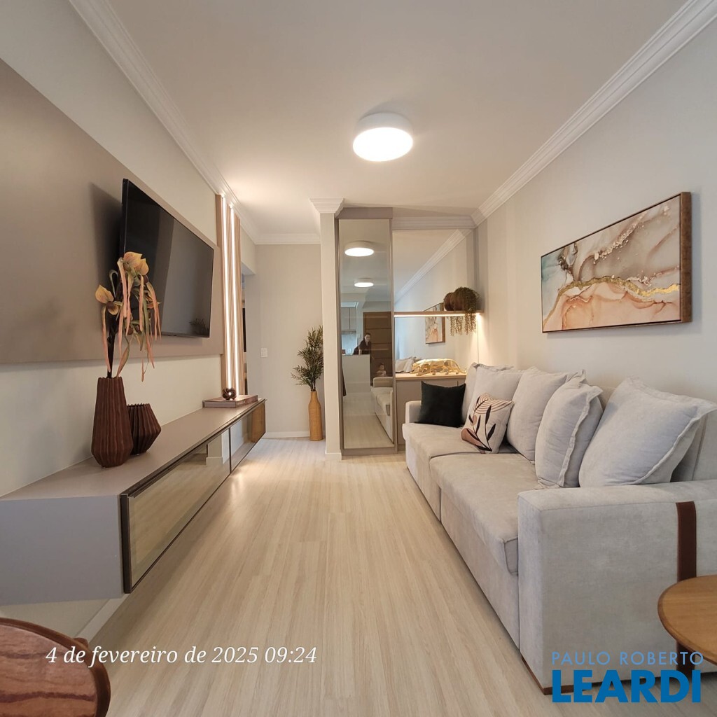 Apartamento com 73 m² de área interna, 3 quartos em piso laminado, sendo 1 suíte. Banheiro social com bancada em granito. Sala para dois ambientes com piso em porcelanato e acabamento de alto padrão. Cozinha estilo americana com bancada em granito e área de serviço separada.