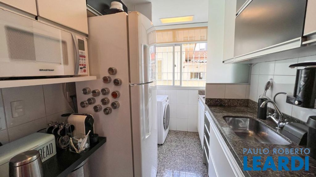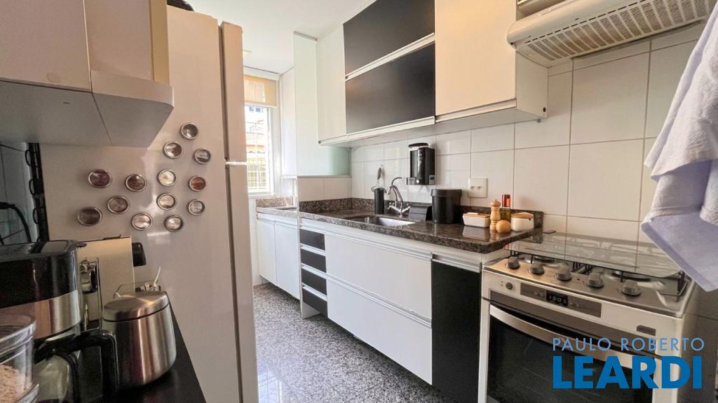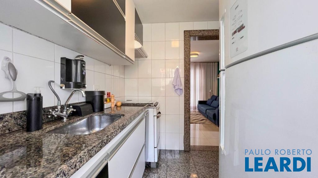 Cozinha planejada com bancadas em granito e armários sob medida.