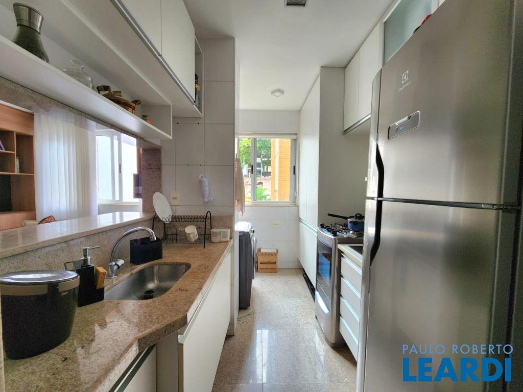 Piso em granito na sala, cozinha, área de serviço e banheiros;