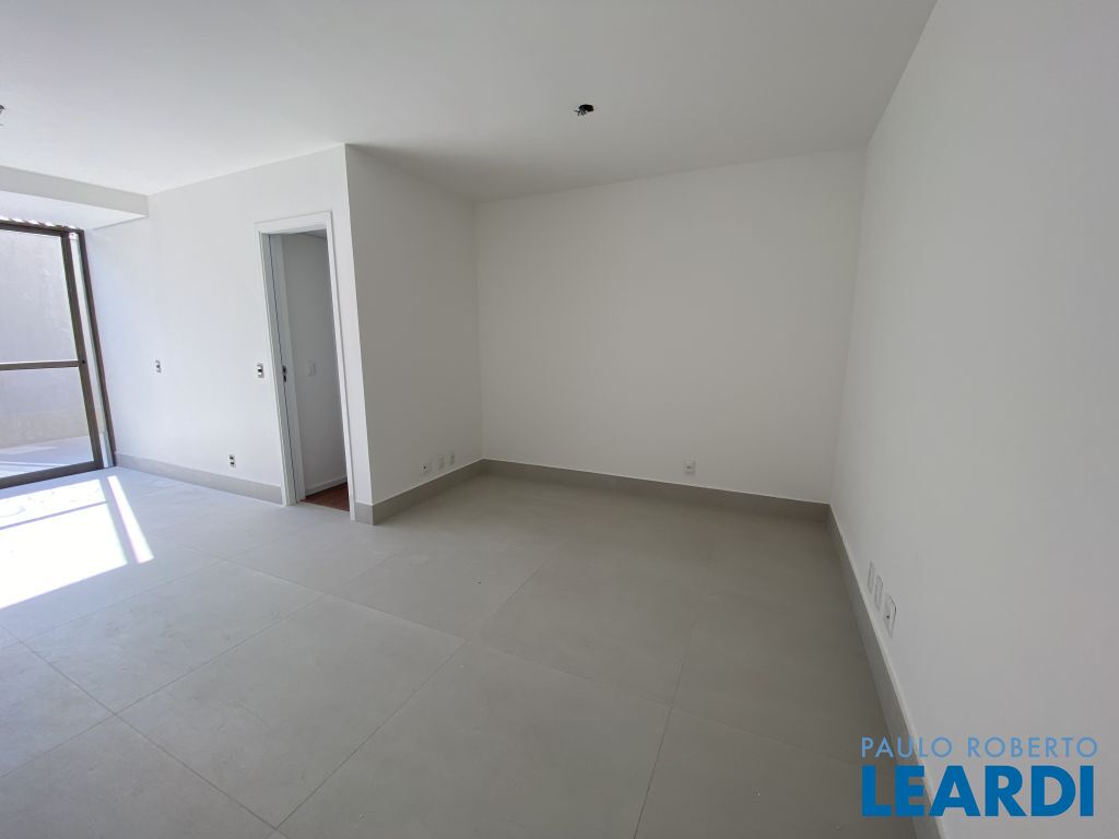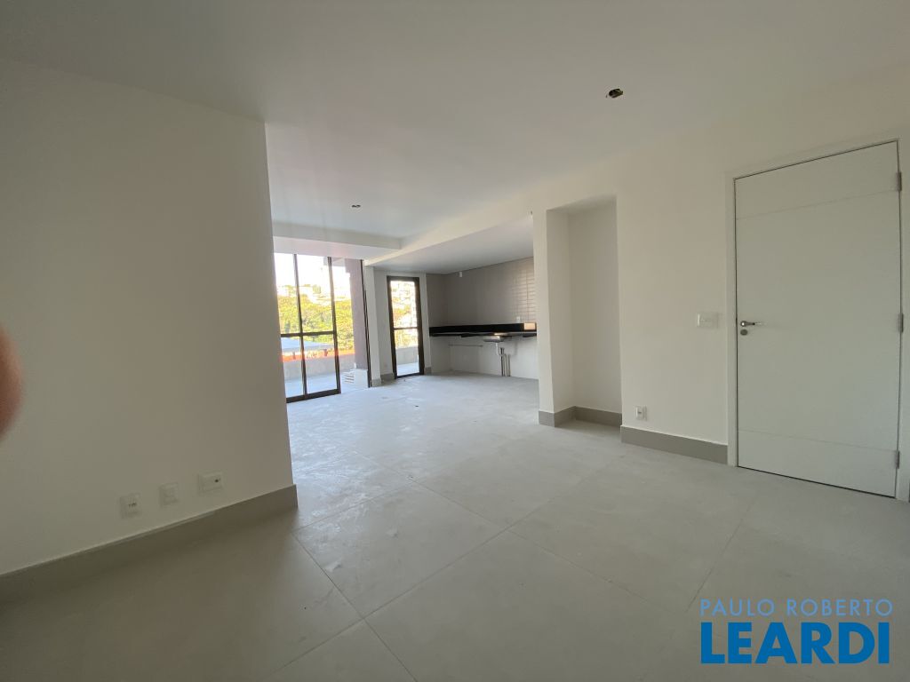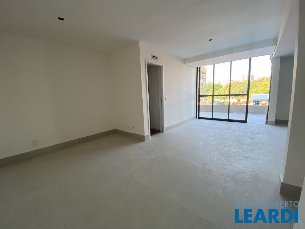 Sala ampla em conceito aberto, com integração à varanda e acesso direto à área externa;