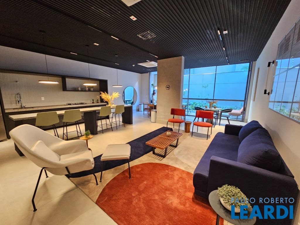 Uma torre com apartamentos de 32 a 34 m² com um suíte e de 66 m² com duas suítes e duas vagas Áreas Comuns Lobby Lounge Externo Espaço Gourmet Piscina Sauna Massagem Projeto arquitetônico moderno, que traduz o novo momento da cidade, onde mobilidade e facilidade de integração com o bairro e arredores demonstram o novo estilo de vida inteligente que o morador de uma cidade cosmopolita como São Paulo merece. Luz natural abundante, aconchegante e que traz amplitude, graças aos caixilhos e às janelas em dimensões generosas, planejados para uma localização única e privilegiada. Além disso, você tem lazer completo e serviços pay per use. Lazer é uma parte fundamental do projeto. Claris oferece tudo o que você espera para se sentir bem no seu tempo livre. Pode desfrutar à vontade. Serviços Pay Per Use. Oferecendo o máximo para sua conveniência. Viver no Claris é ter muito mais conforto, facilidade e qualidade em todos os momentos, para economizar tempo e ter muito mais tranquilidade. LOCALIZAÇÃO Tudo o que você mais gosta e precisa a poucos metros, sem necessitar se locomover de carro. Av. Cotovia Starbucks R. Normandia Ofner Metrô Eucaliptos La Nonna di Lucca La Pasta Gialla Igreja Nossa Senhora Aparecida Bar do Alemão Aoyama Av. Ibirapuera Av. Hélio Pellegrino Frutaria Parques da Bicicletas Shopping Ibirapuera0311