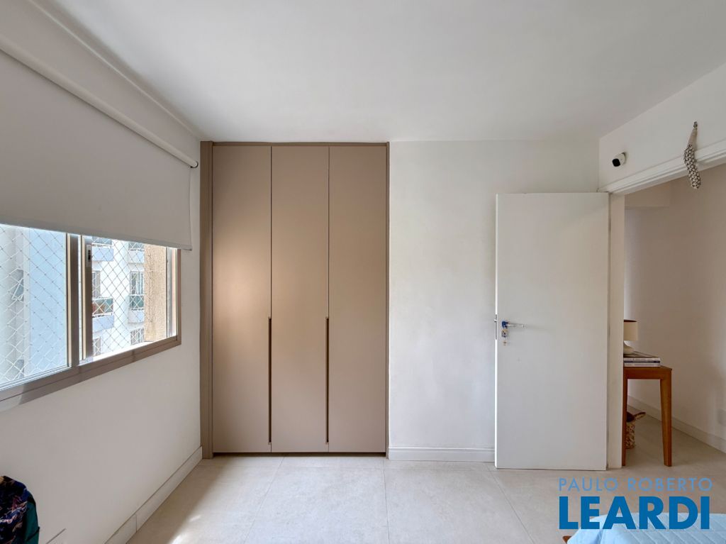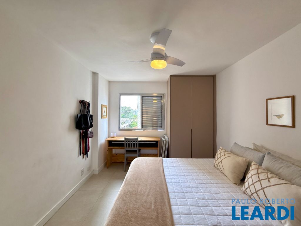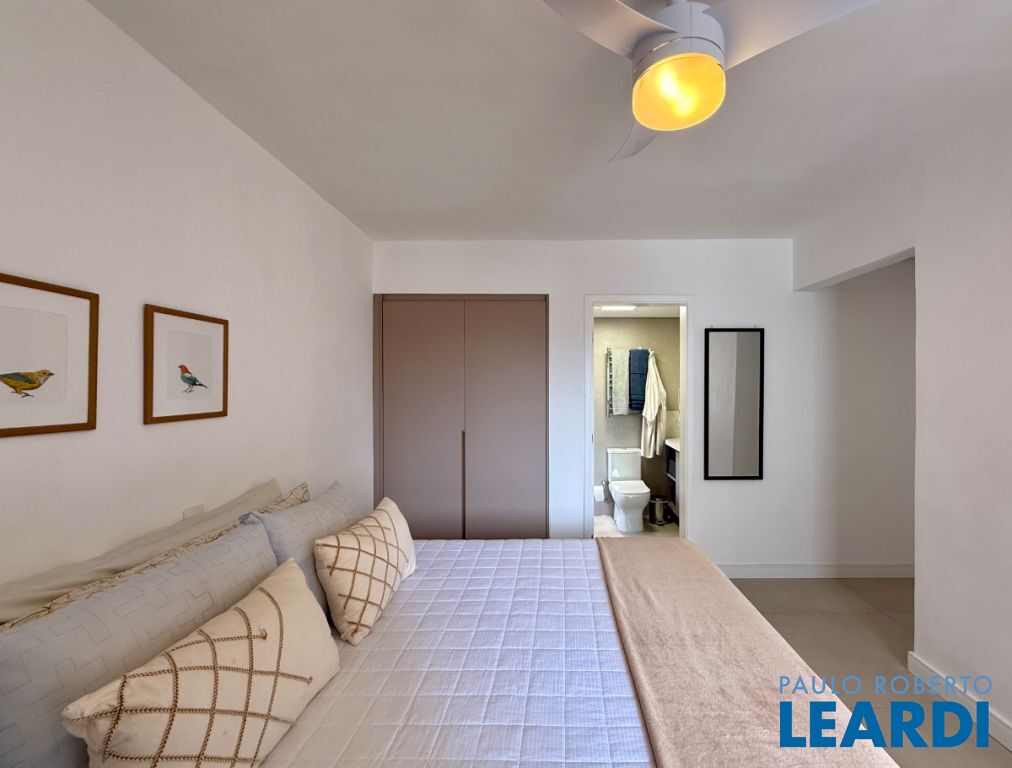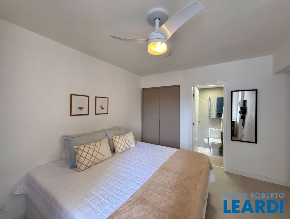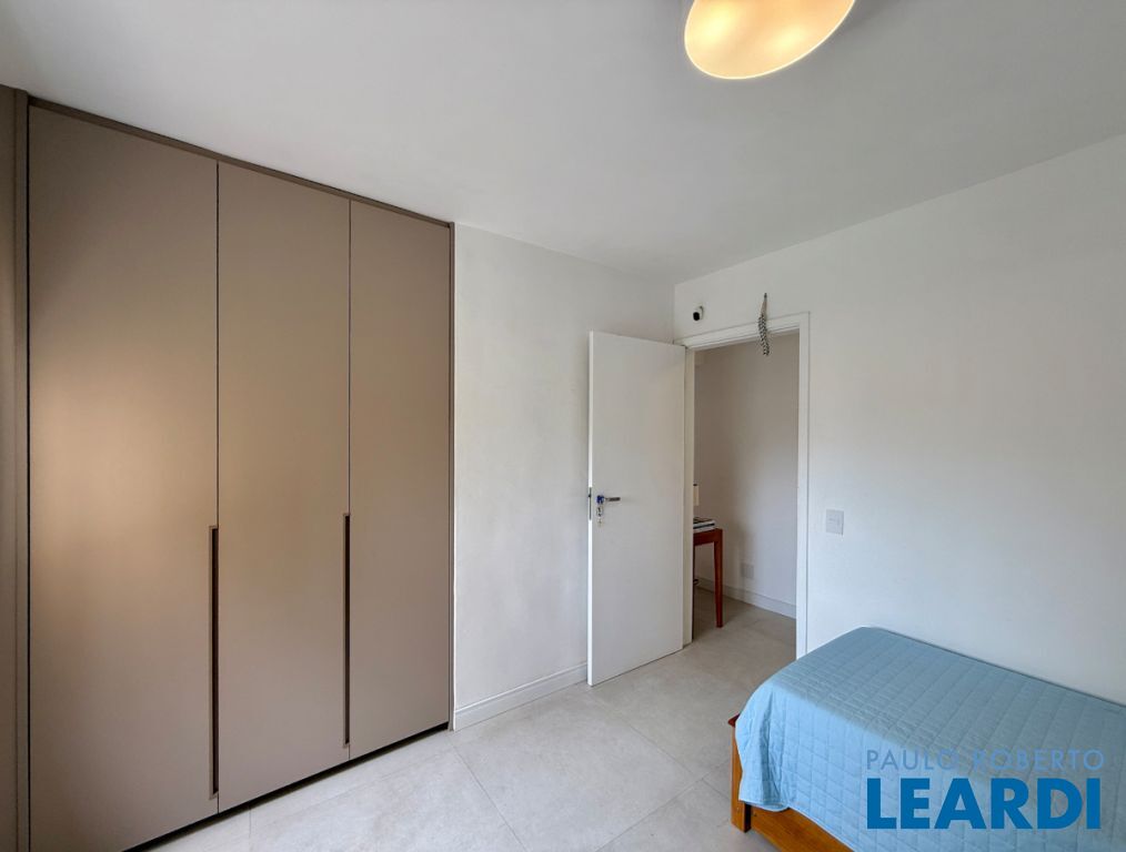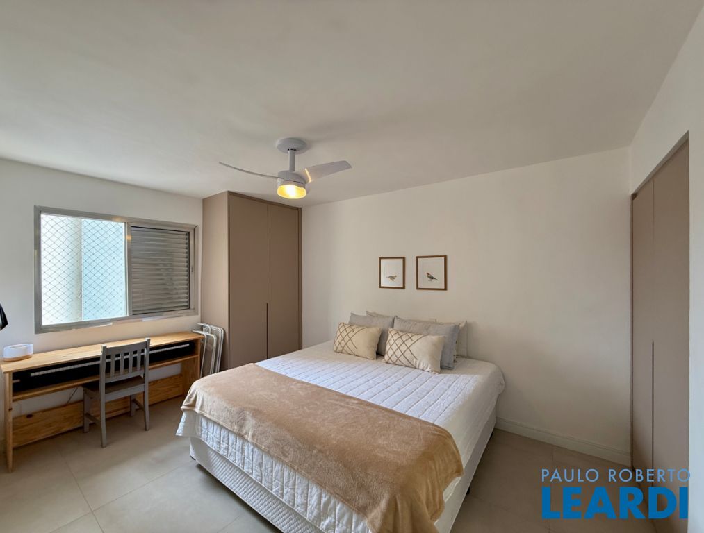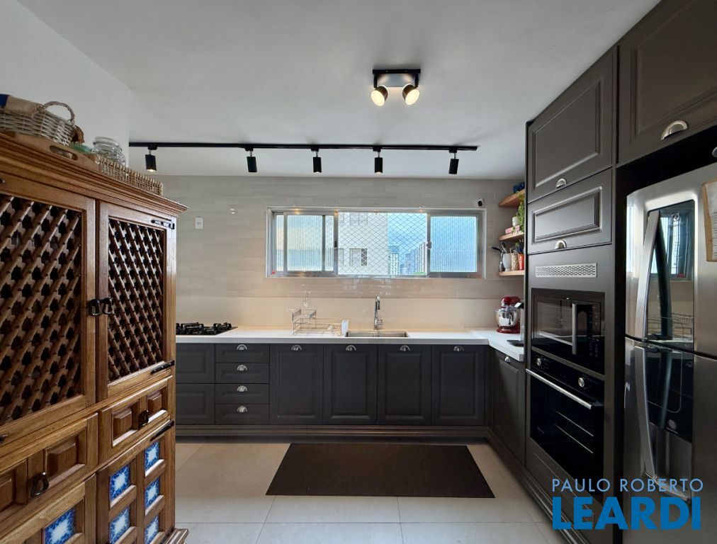 O apartamento conta com uma cozinha integrada, área de serviço e um banheiro de serviço, além de móveis planejados que otimizam o espaço. O piso em porcelanato traz modernidade e facilita a manutenção.