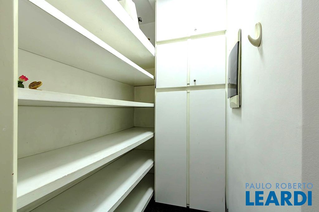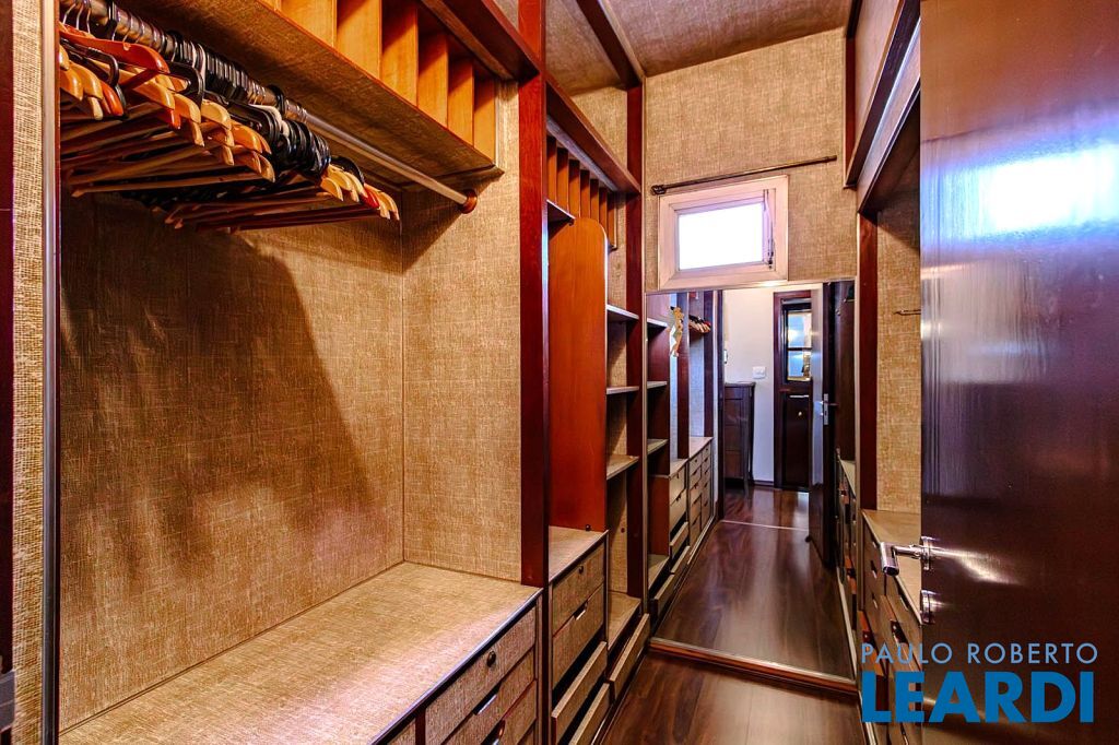 Três dormitórios sendo uma suíte, com closet e os demais dormitórios repletos de armários.