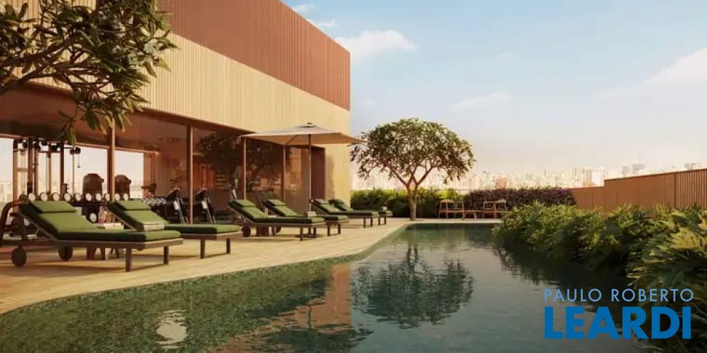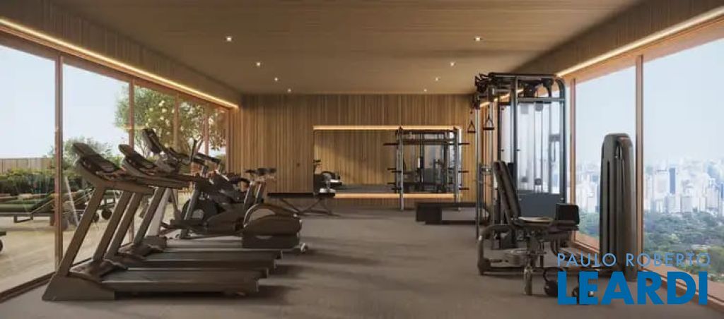 - Academia completa de frente para a piscina de formato orgânico
