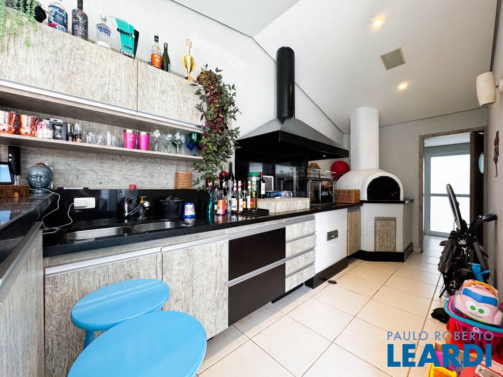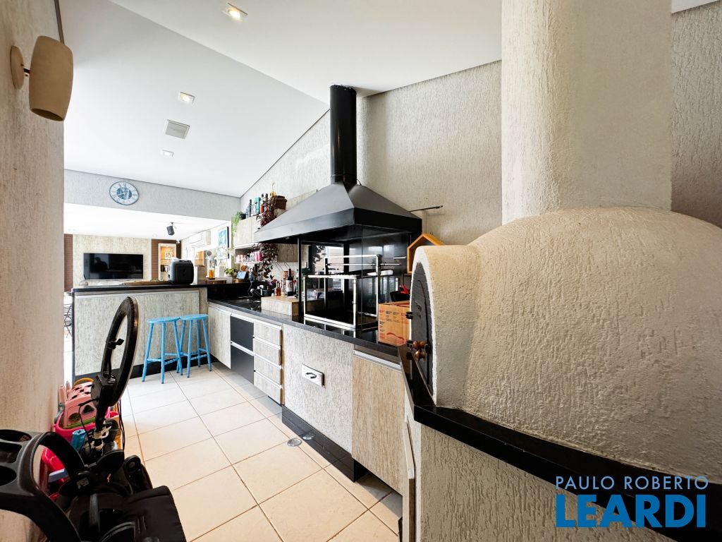 Área gourmet integrada com churrasqueira e forno de pizza