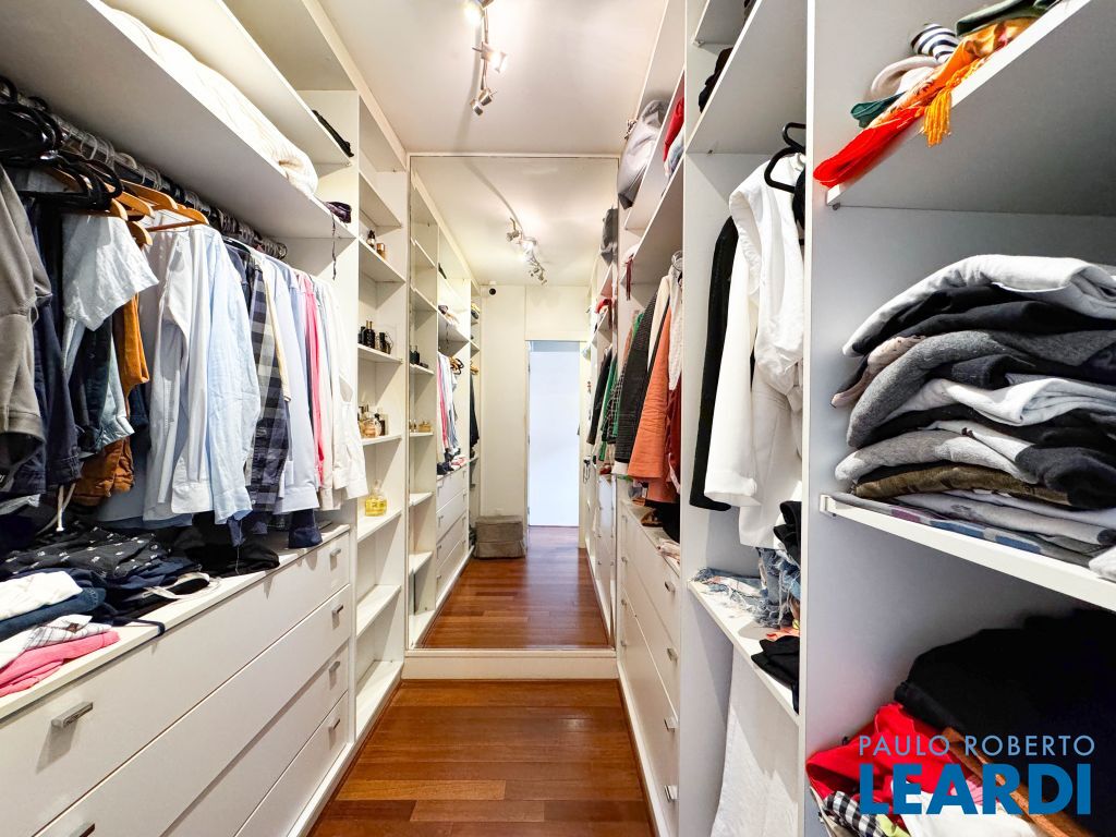 Suíte 1 (master): Closet e banheiro com cuba dupla