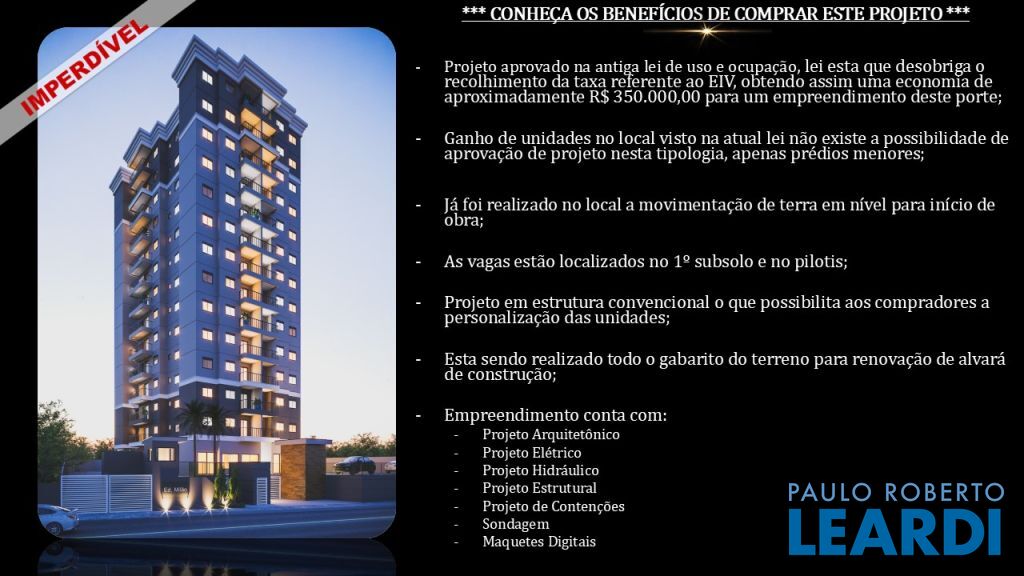 Terreno com 1282 m2 à venda, com projeto já aprovado para construção de um prédio de 13 andares e 78 apartamentos com 40 m2 com todas as comodidades de clube.1512
