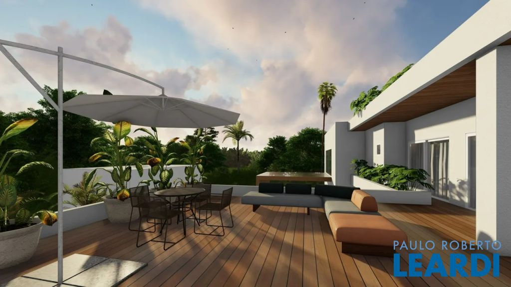 No andar superior temos 3 amplas suítes com sacada, duas com closets e uma com banheira, hall do elevador, mini copa, roupeiro, além de um belo solar para jardim suspenso, onde é possível contemplar o por do Sol!