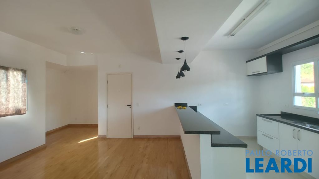sala e cozinha com armários integradas.