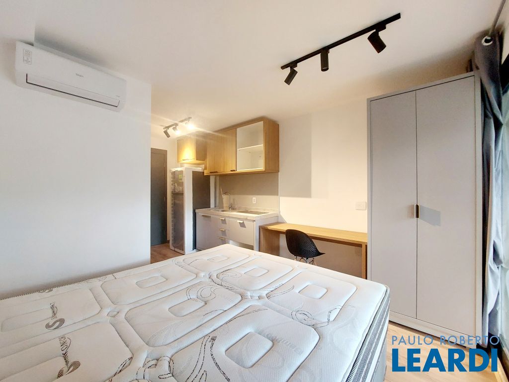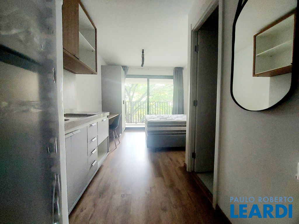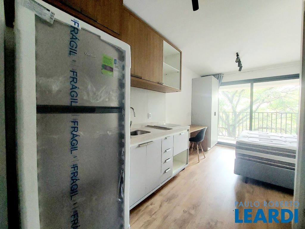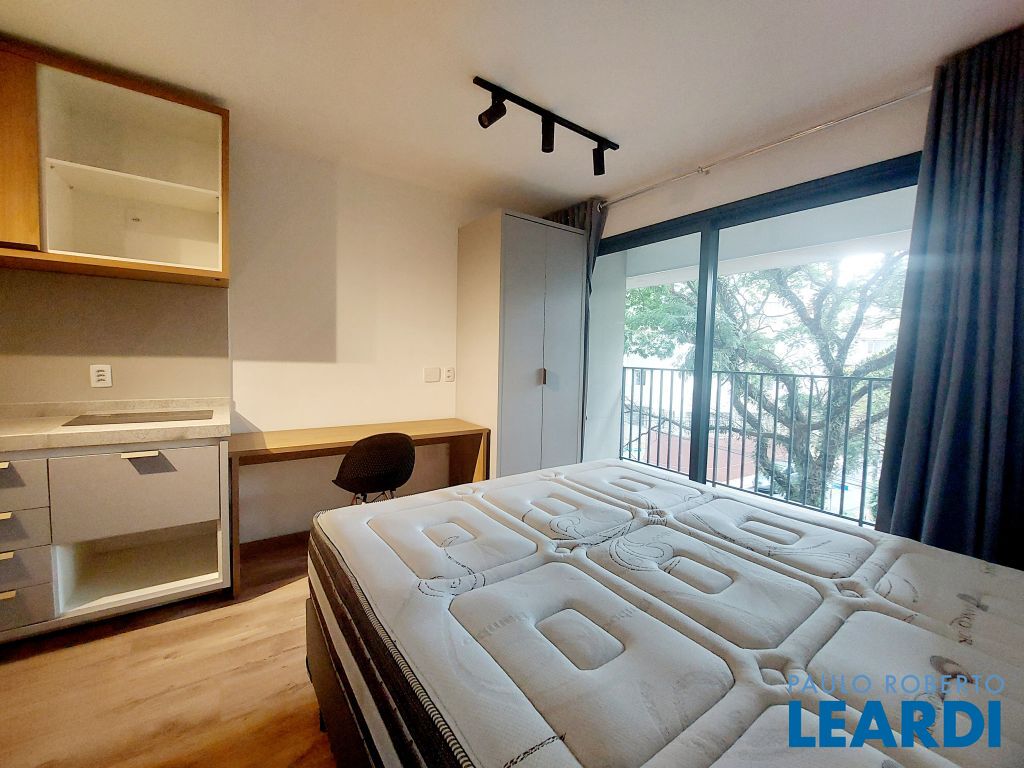 Apartamento tipo studio para locação, próximo da estação Vila Madalena do metrô. Semi mobiliado, com armários na cozinha e banheiro, ar condicionado. Vista livre.1512