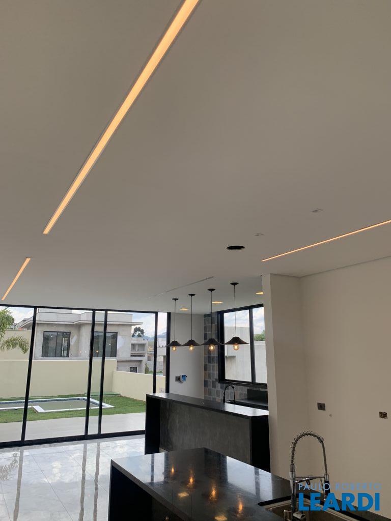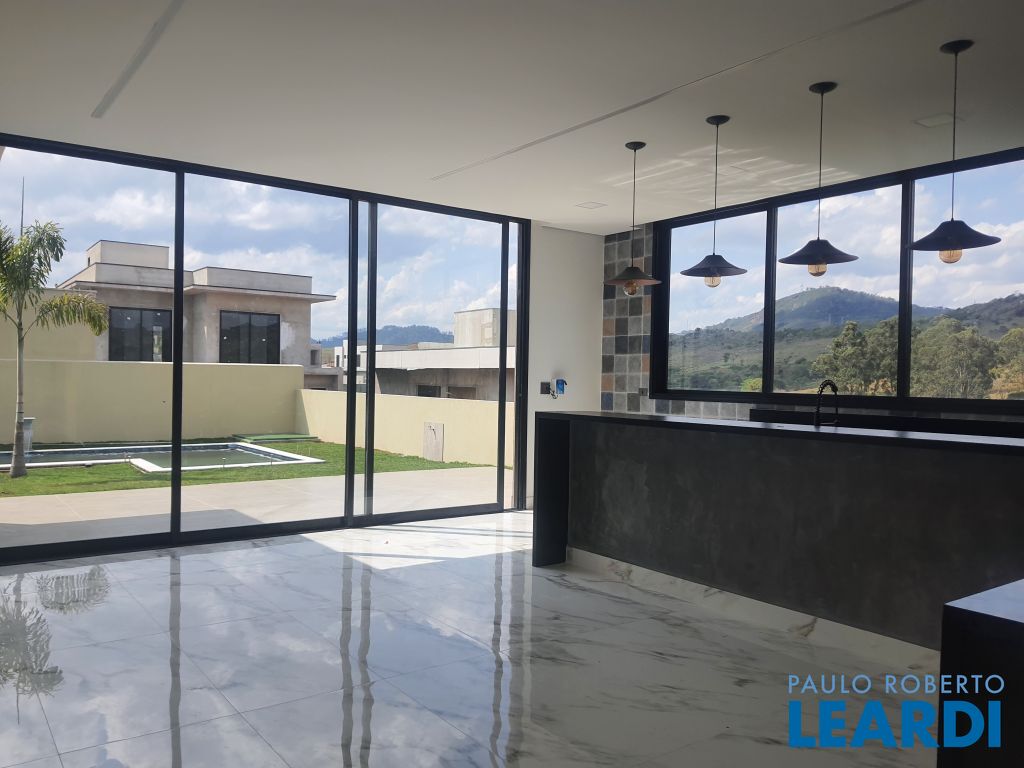 Casa Térrea nova, possui 3 Dorms., sendo 3 Suítes, Salas de estar com pé direito alto, Sala de Jantar, Cozinha integrada, lavabo, área de serviço, piscina e vaga para 4 carros.