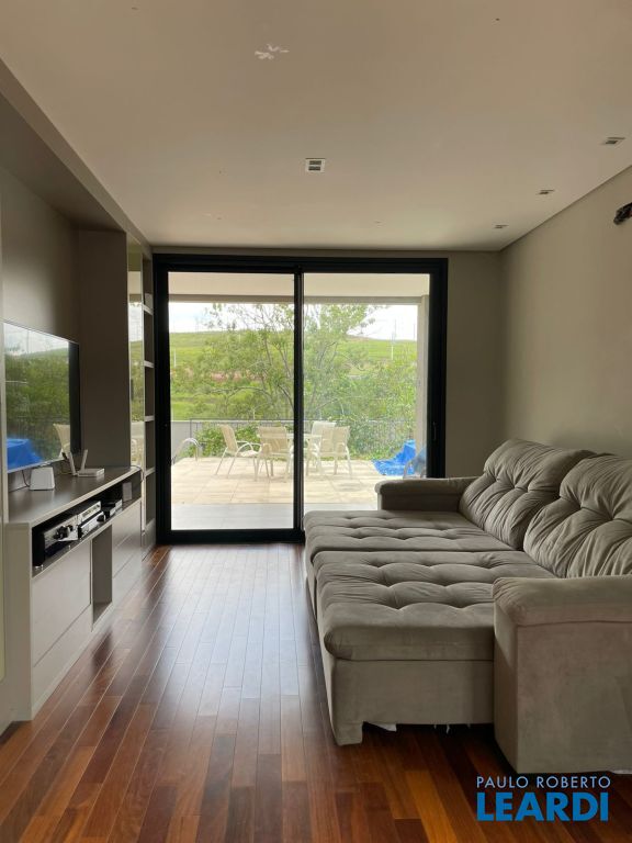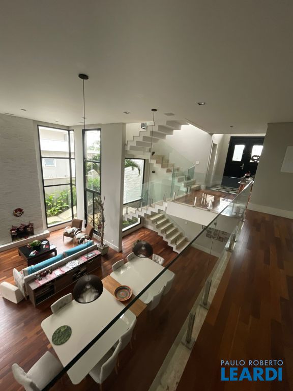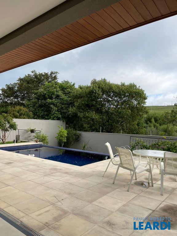 Excelente sobrado em condomínio fechado. Você busca conforto e praticidade com vista livre, piscina, pomar uma área gourmet bem aconchegante? Esta será sua casa. O terreno tem 800m2 tem um bom espaço de quintal e pomar. A casa conta com 4 suítes todas com piso de madeira nobre, persianas automatizadas, armários embutidos. A casa é bem iluminada e clara. A suíte master possui closet e banheira, sacada. Escada imponente com corrimão em vidro, ampla sala de estar e jantar com pé direito duplo, lareira, sala de tv, cozinha em conceito aberto com uma linda bancada em granito preto, cooktop, torre quente, espaço para máquina de lavar louça, cuba grande, despensa, lavanderia, lavabo, escritório, espaço para oficina, uma bela área gourmet com churrasqueira e forno de pizza. A casa possui um espaço em torno de 110m2 para sua criatividade pode ser feito espaço de jogos, fitness, etc... esta área possui um banheiro, Espaço para receber um elevador. São 2 vagas cobertas e 2 vagas descobertas. Venha nos fazer uma visita!1103