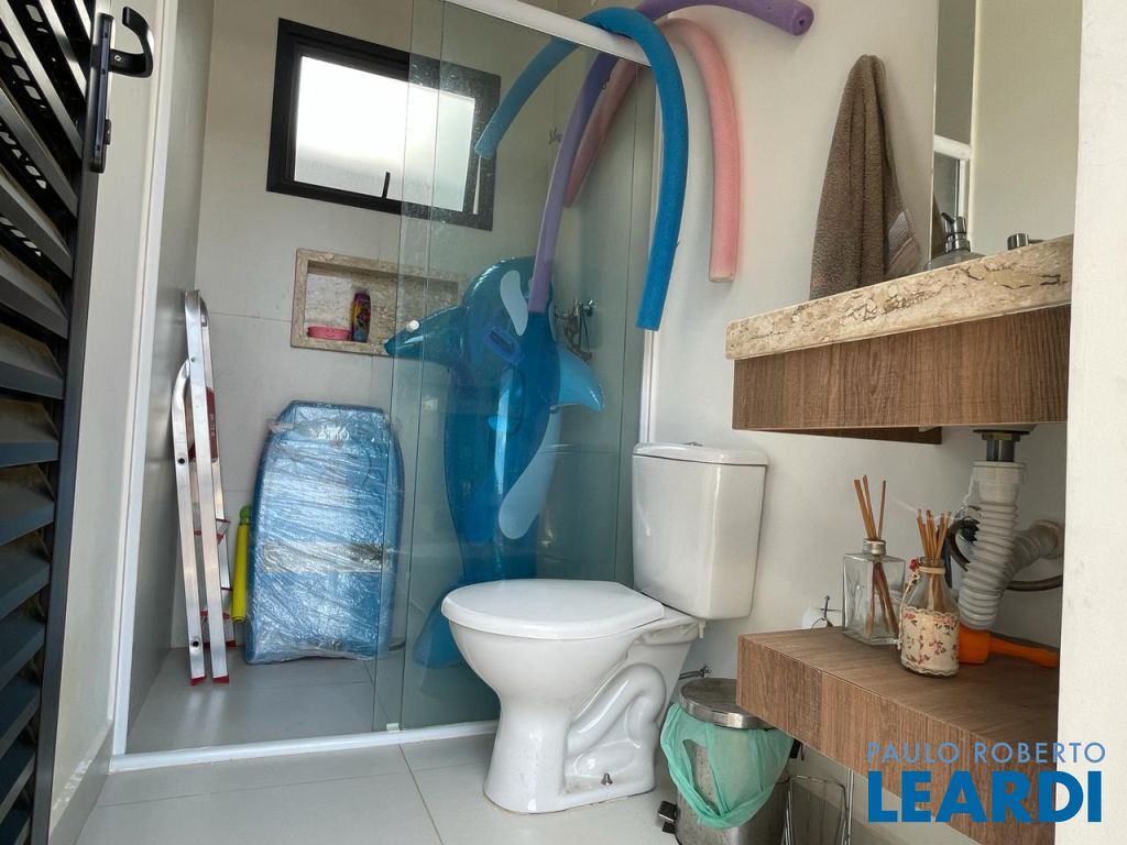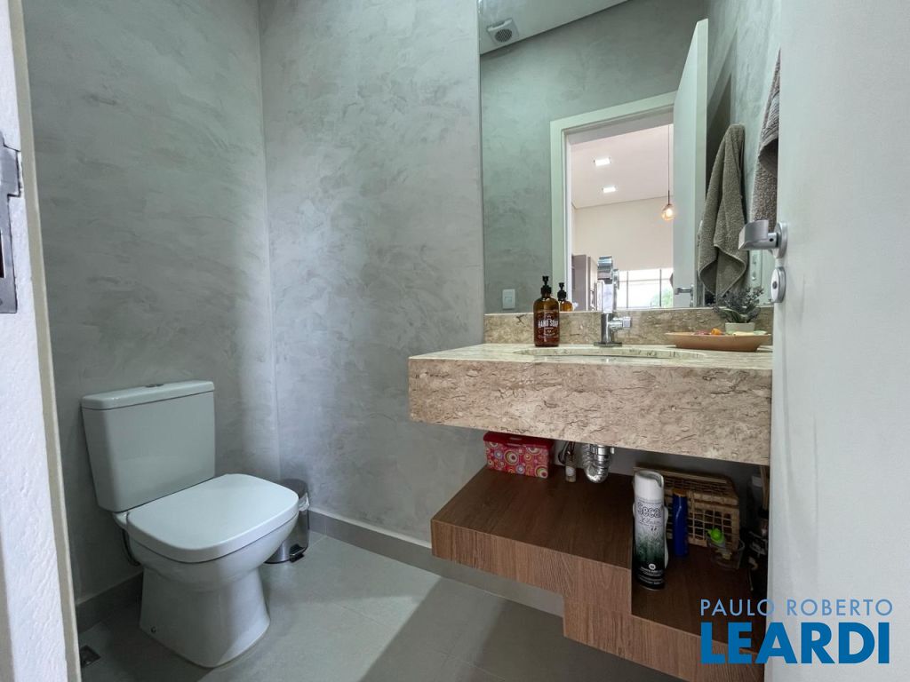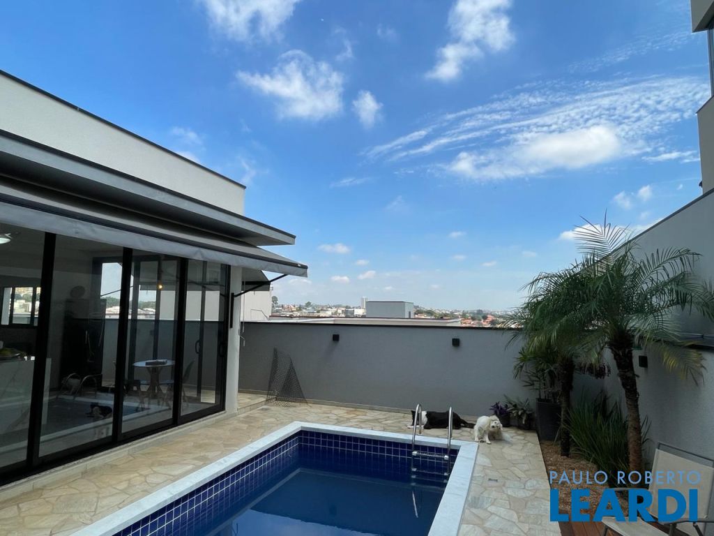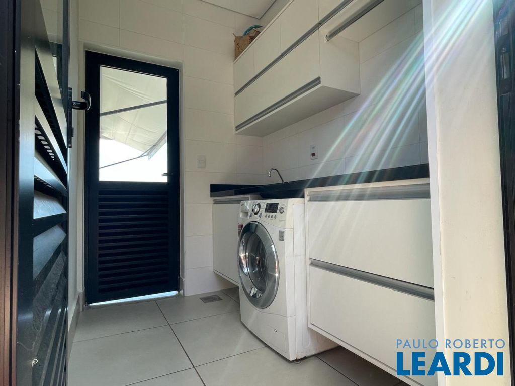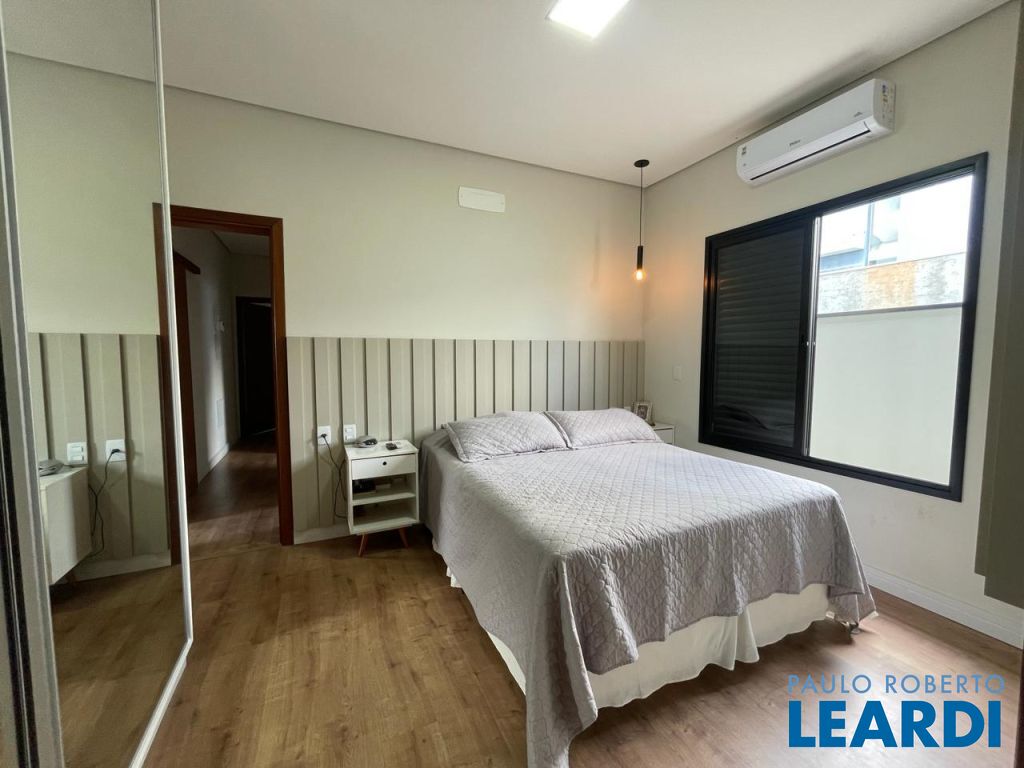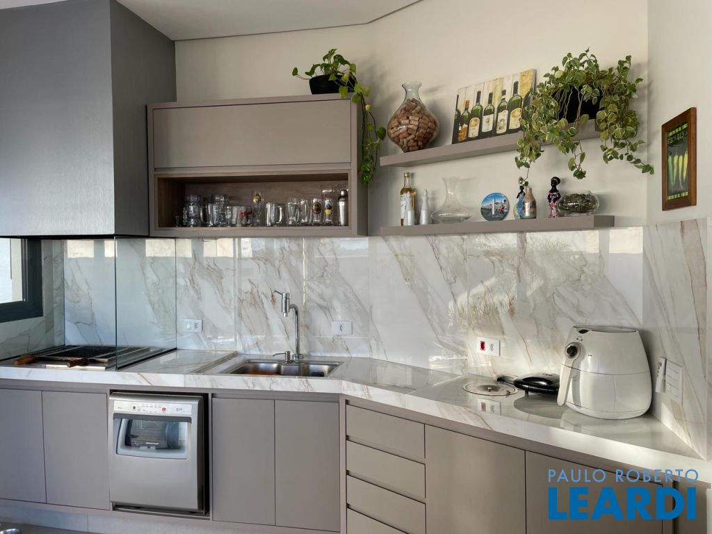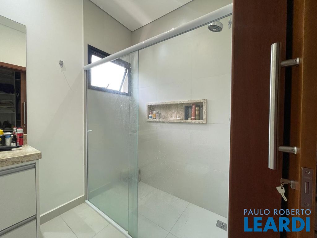 São 3 suítes com closet e ar condicionado, todas no mesmo nível dos demais ambientes. LIving com pé direito duplo, integrando o exclusivo painel de TV, jantar, cozinha e área gournet. Conta ainda com um lindo lavabo. A cozinha é um sonho, com ilha e bancadas em mármore branco paraná, elegantemente decorada e equipada com planejados. Despensa e lavanderia completam este ambiente . Todo o espaço bem iluminado e com acesso à piscina que ainda conta com banheiro e depósito. Garagem coberta para dois veículos.
