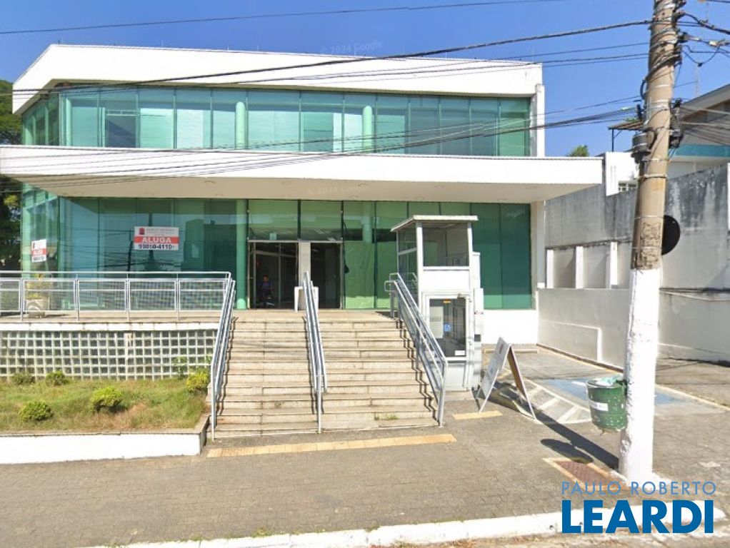 Locação de prédio comercial, com 903m² de área construída, com 5 salas, ar condicionado central, 12 vagas para carro e 2 para moto, plataforma elevatória de acessibilidade.