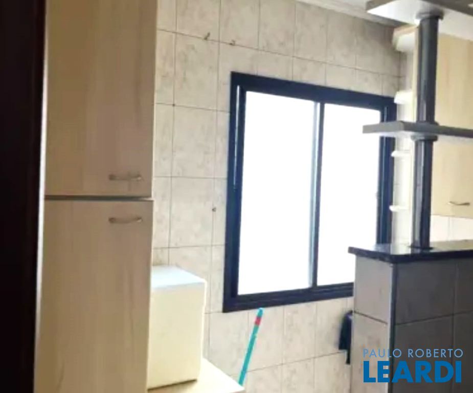 São 2 quartos, sala, cozinha com armários, 1 banheiro, área de serviço e 1 vaga de garagem.