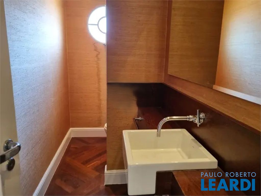 Todo apartamento com piso de madeira, Lavabo.
