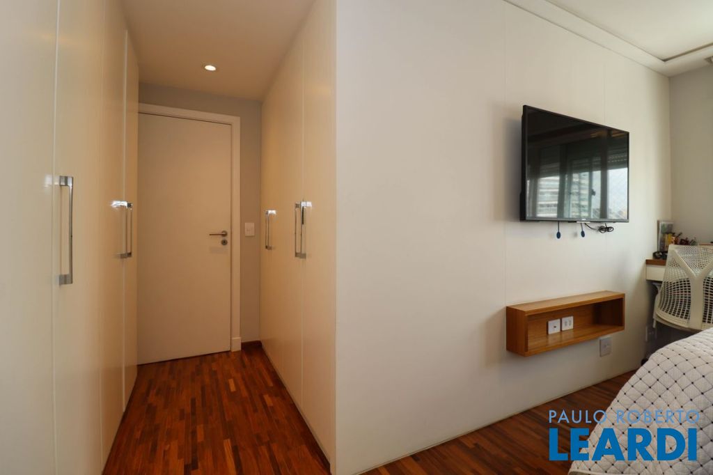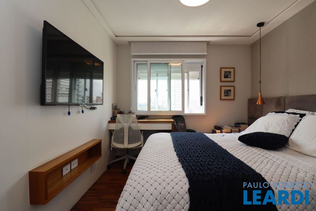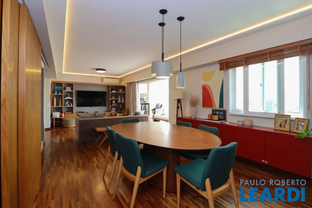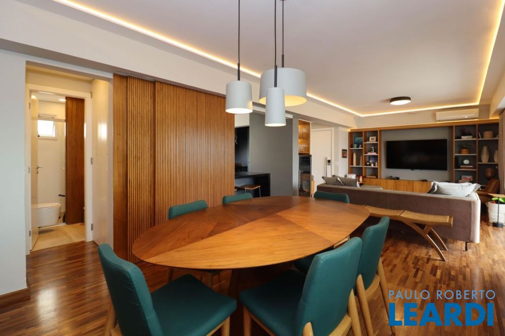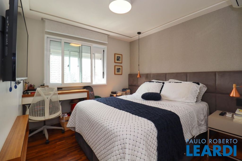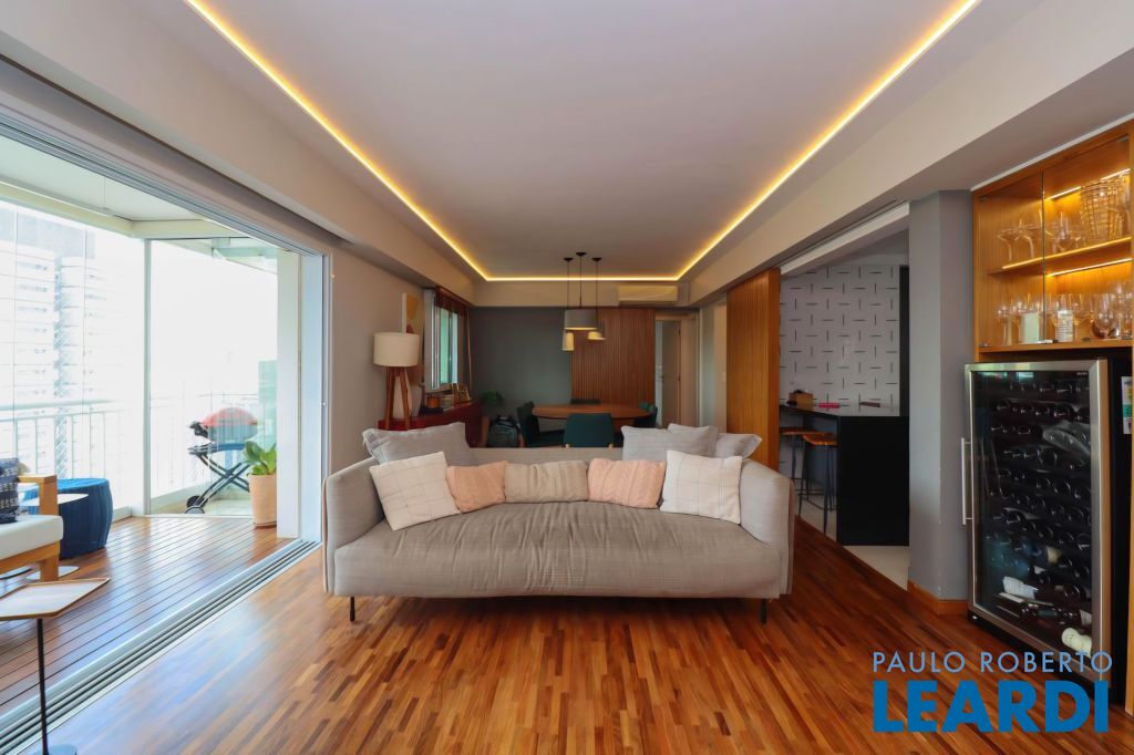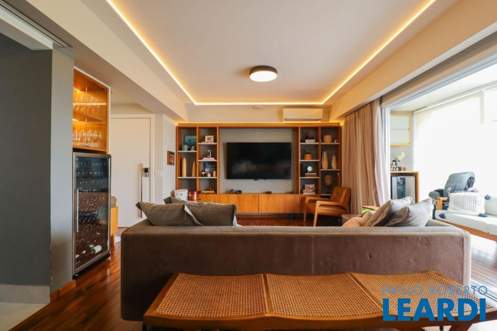 Sala ampla com varanda, proporcionando ótima iluminação natural. Ar-condicionado instalado na sala e nos dormitórios. Piso de taquinho de madeira e marcenaria de excelente qualidade em todos os ambientes. Vidros antirruído, garantindo conforto acústico.