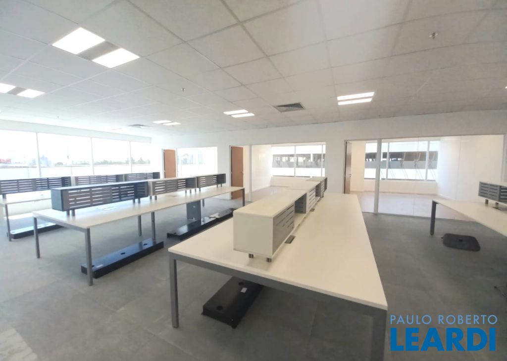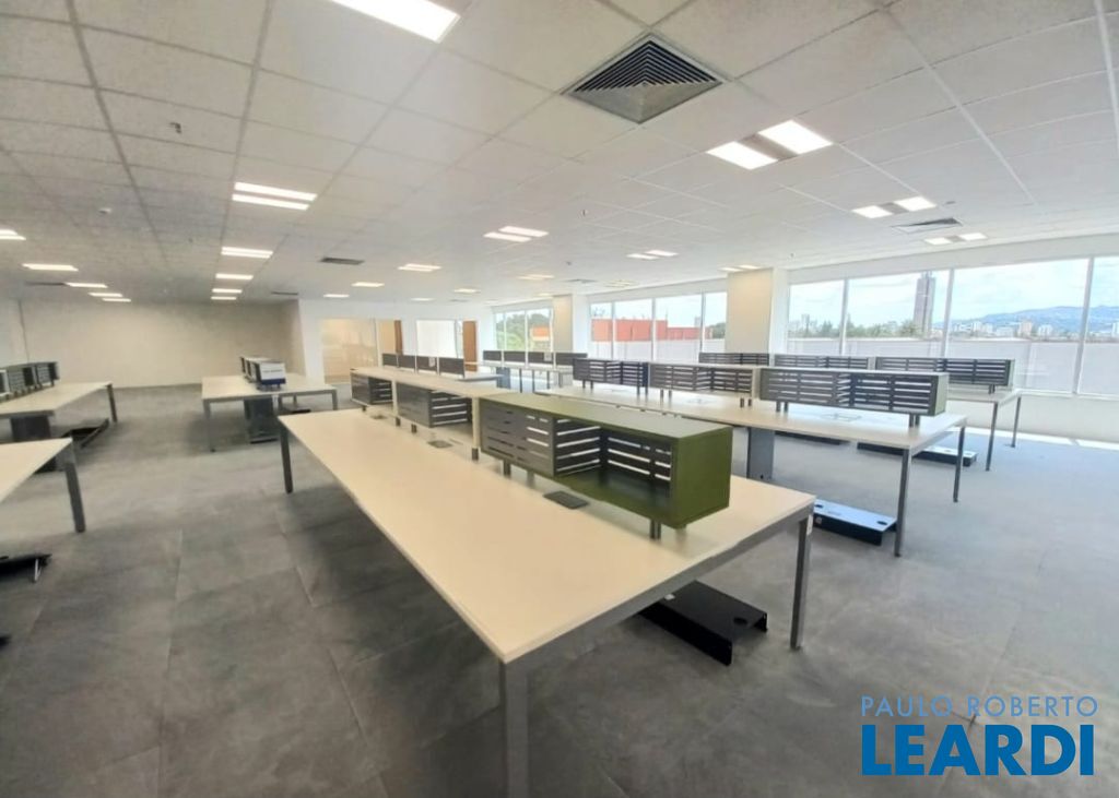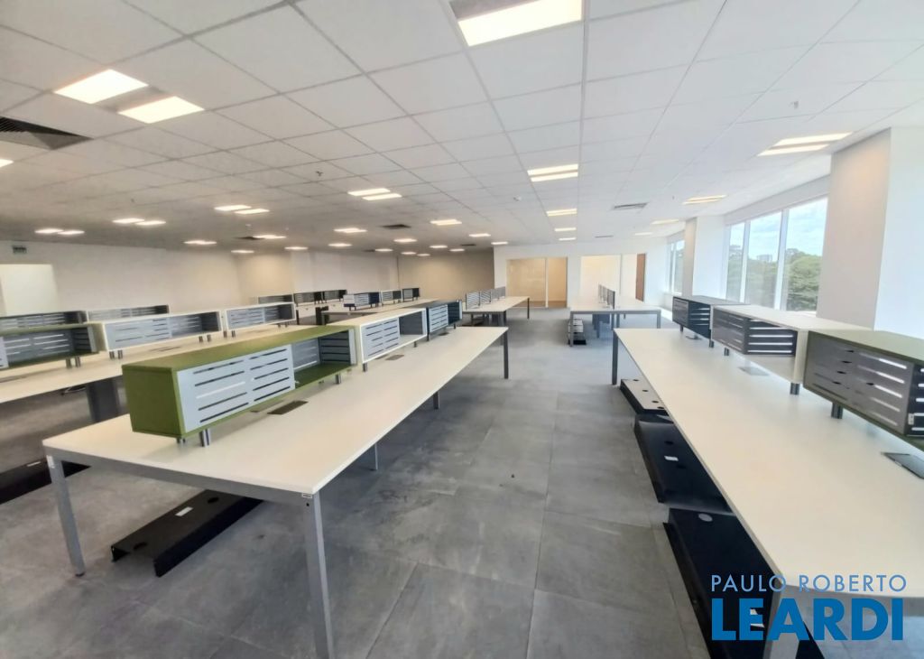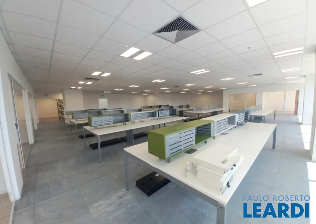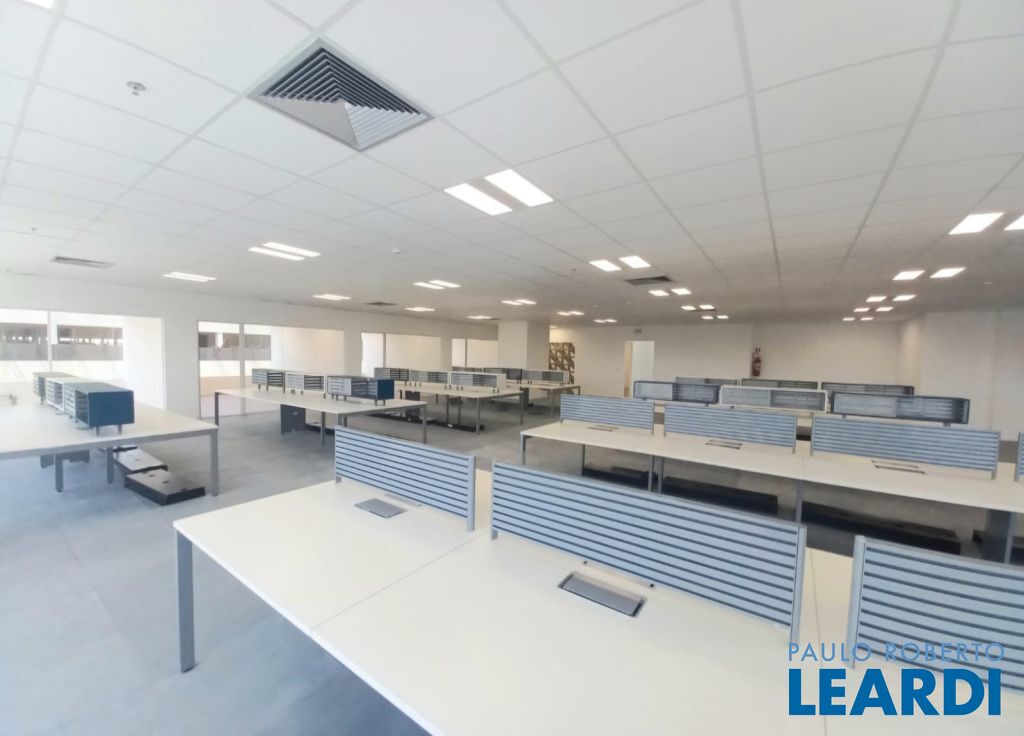 Pronta para ocupação imediata, recepção e área de café, cinco salas de diretoria ou departamentos. Open Space mobiliado para 48 posições.14 banheiros comuns mais 1 PNE.