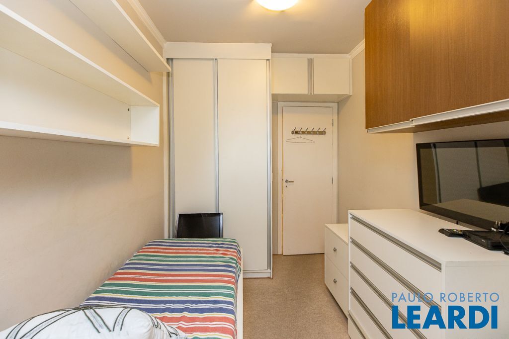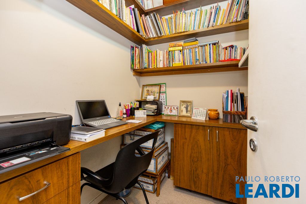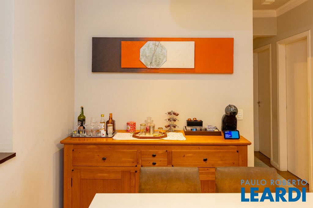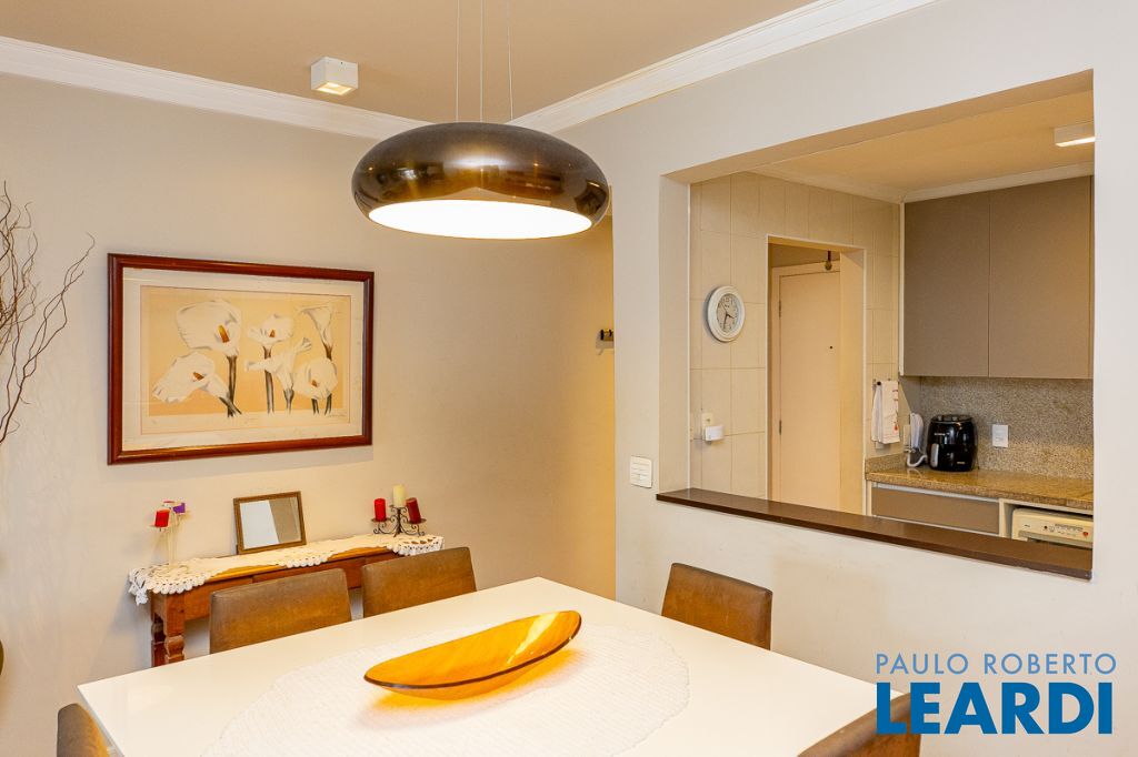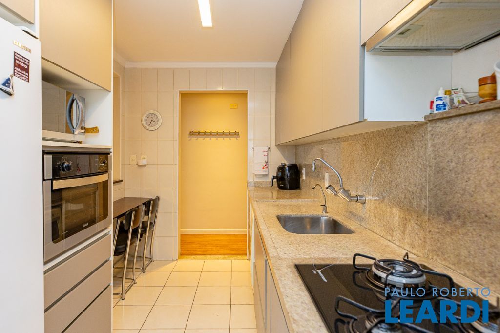 A cozinha americana, repleta de armários, conecta-se à lavanderia espaçosa, que também possui armários e ainda dispõe de quarto e banheiro de empregada, garantindo praticidade no dia a dia. O apartamento é voltado para a frente, proporcionando vista ampla, iluminação natural abundante e uma atmosfera acolhedora.