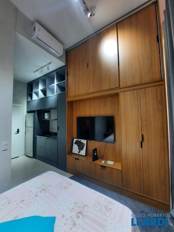 Lindo apartamento, tipo studio, ao lado da estação Brooklin do metro (linha Lilás), condomínio com lazer completo, ótima opção para moradia ou renda, apartamento com varanda e vista livre, agende sua visita e venha conhecer essa oportunidade, apartamento todo mobiliado, armários planejados e muito espaço no apartamento.1103