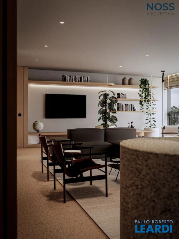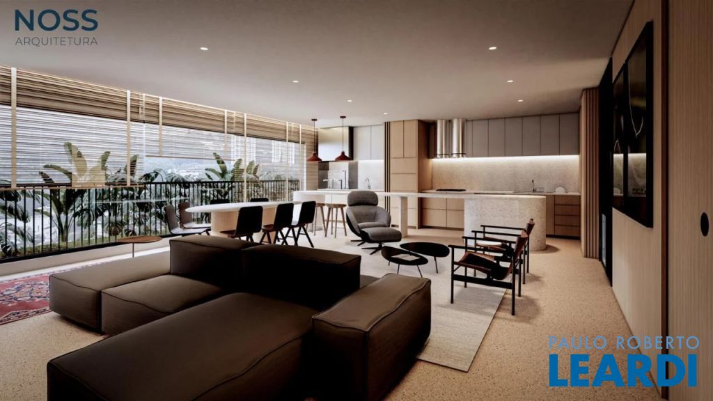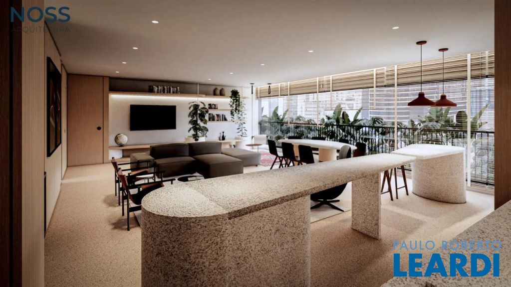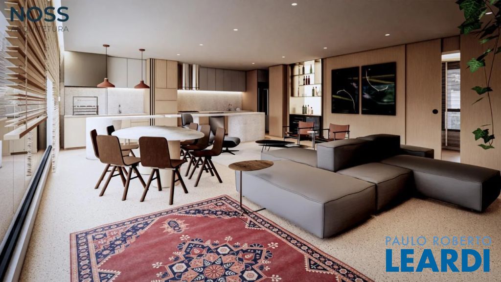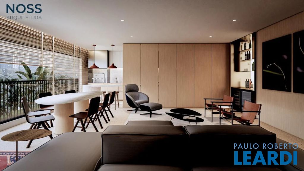 3 suítes mais Home Office, sala com 3 ambientes, com terraço social com infraestrutura para churrasqueira, área de serviço, banho serviço, despensa e área técnica, deposito privativo
