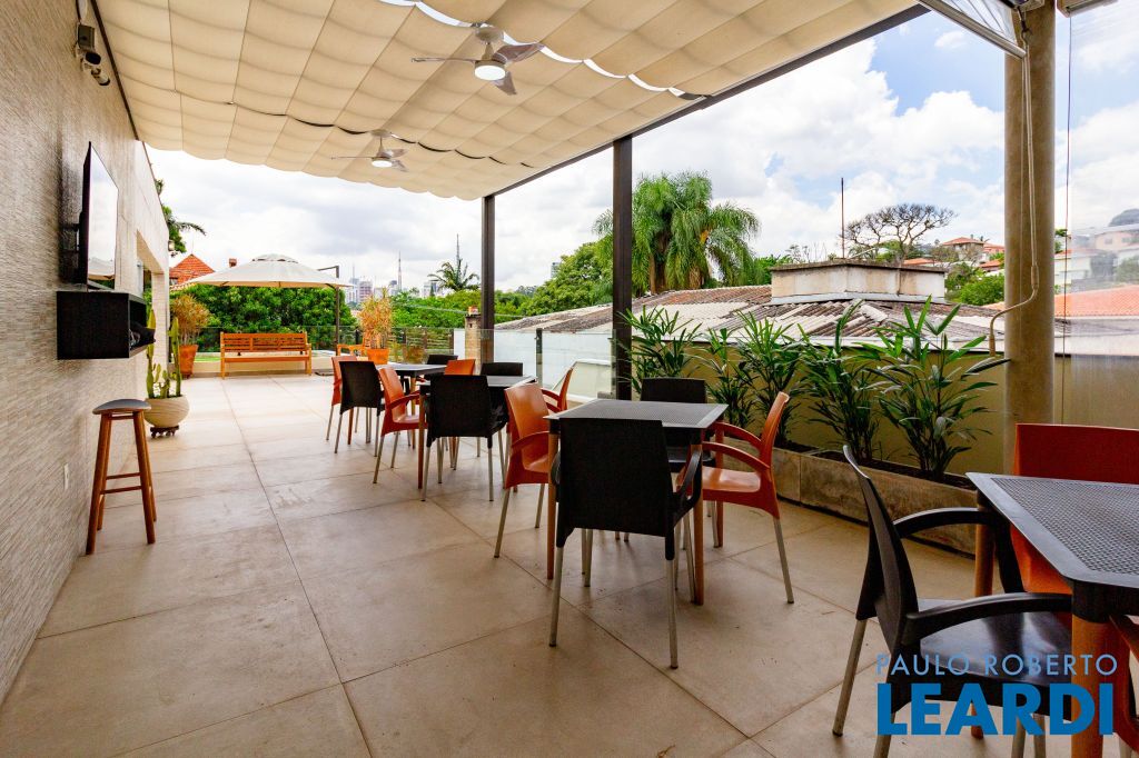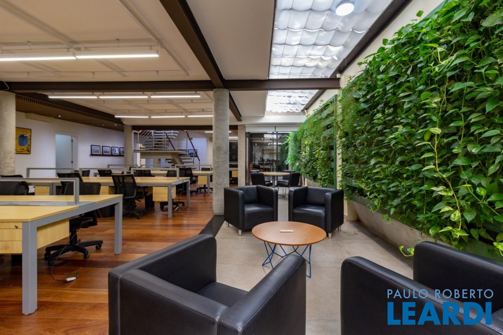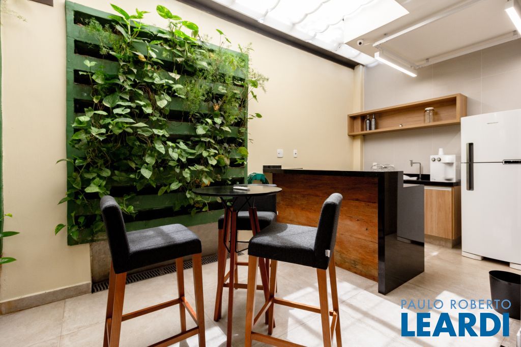 No andar superior, terraço/rooftop com área de descanso e linda vista do bairro, cozinha com copa para funcionários, 2 banheiros Masc/Fem. e área de serviço. A casa possui ainda 2 vagas de garagem, está localizada em corredor de serviços com comércio e restaurantes, transporte público farto, próxima das estações de metrô Clínicas e Sumaré e ponto estratégico com ótima visualização. 1403