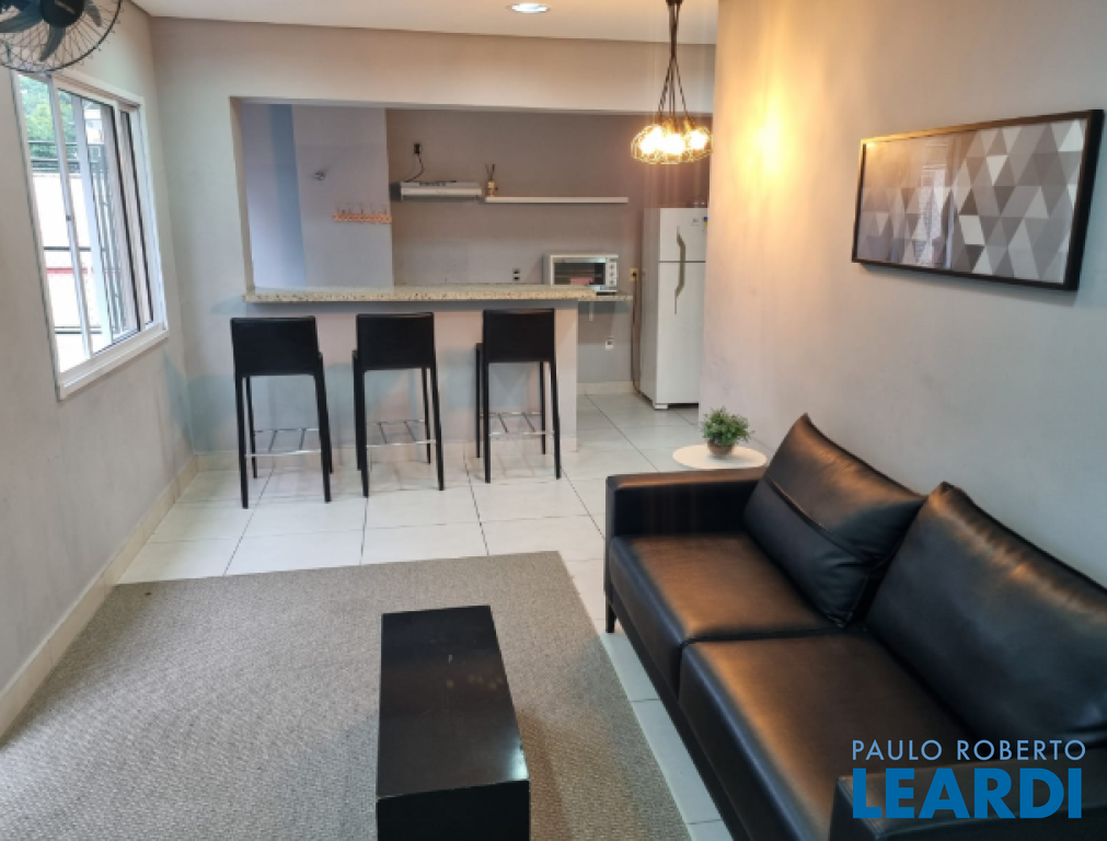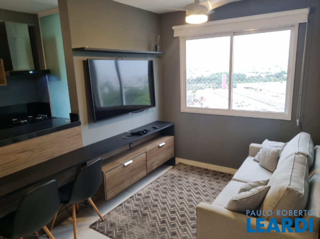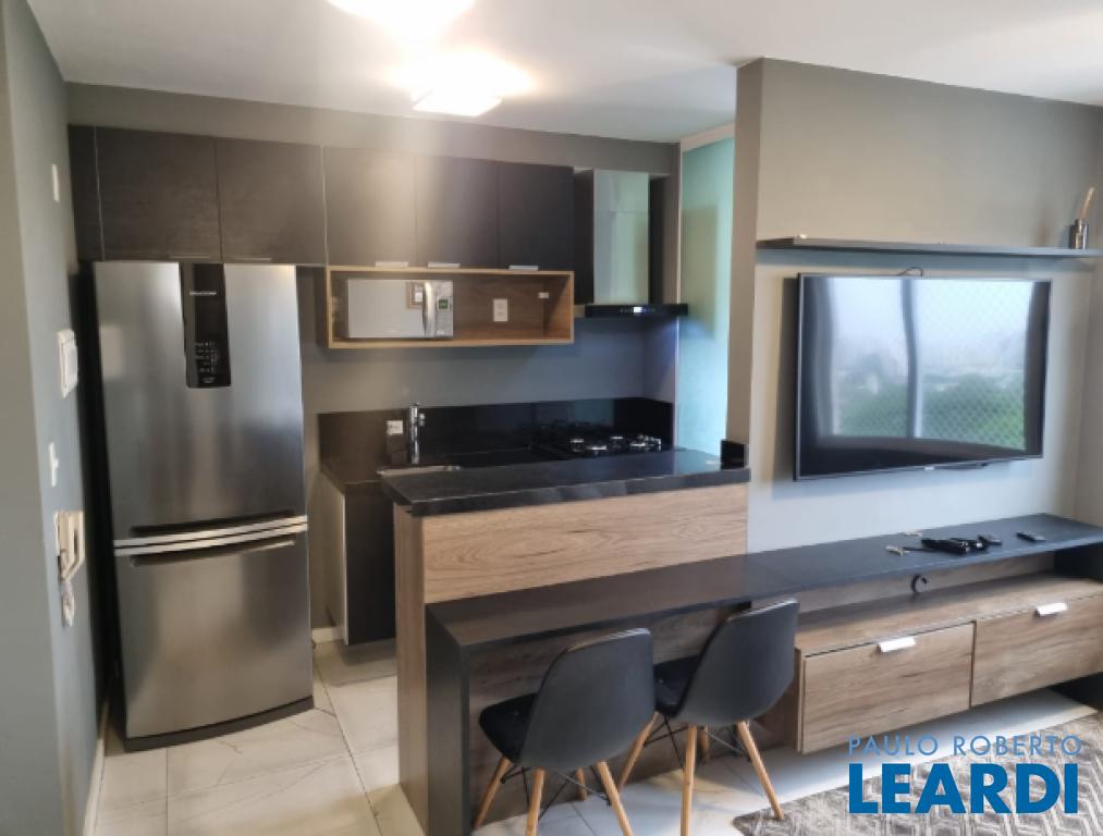 Exelente apartamento mobiliado à venda ou locação com 31m² em andar alto, cozinha conceito aberto integrada com a sala de estar, 1 quarto, 1 banheiro e 1 vaga de garagem demarcada. Condomínio com academia, salão de festas, área gourmet com churrasqueira, playground, mercadinho.