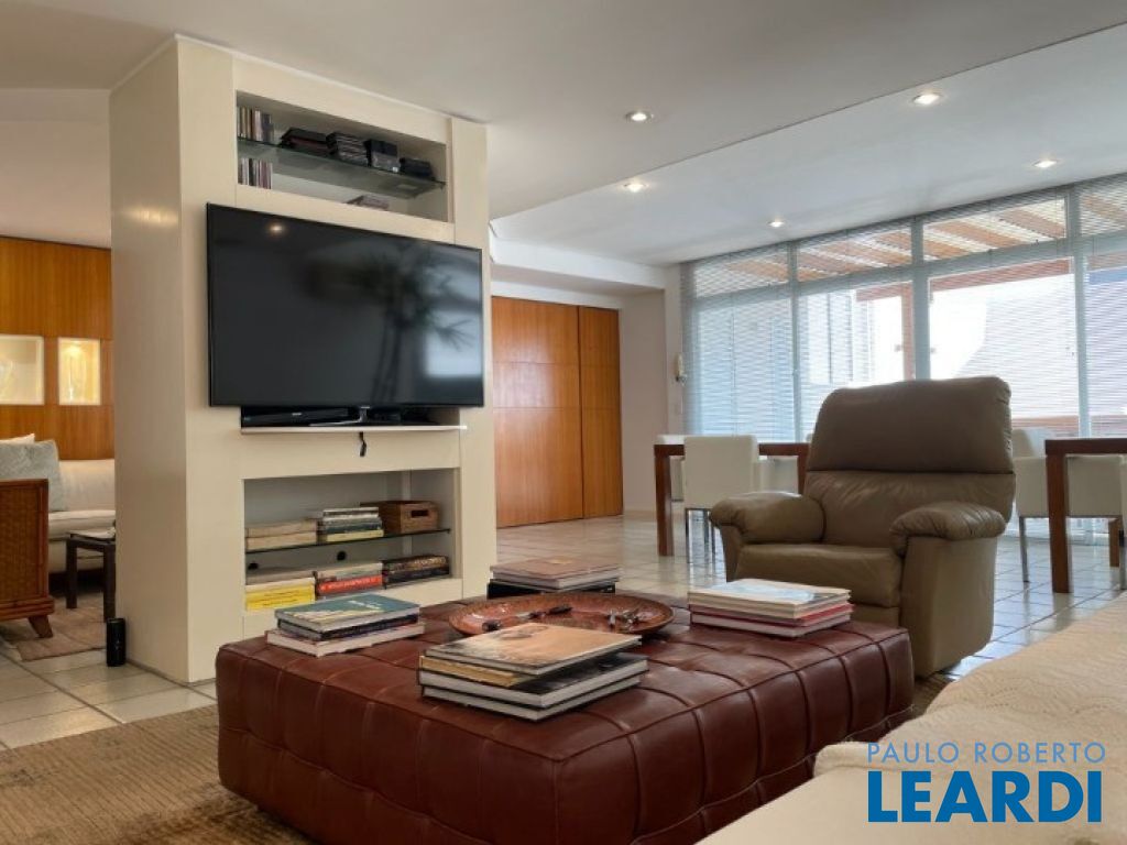 Cobertura duplex na Vila Suzana - ao lado da Graded School Morumbi - 500 m² (2 lajes de 250 m² cada), 4 vagas. - 4 suítes (original 5, reversível), sendo 2 com hidromassagem. - Suíte principal com 2 closets, 2 banheiros e escritório interno com 20 m². - 5 salas (estar, jantar, almoço, íntima TV, salão na cobertura com cozinha americana). - Terraço gourmet com pergolado e deck com spa. - 1 lavabo em cada andar mais um no terraço. - 2 dependências de empregados. - Ar condicionado em todos os ambientes (menos 1 dormitório e sala íntima). - Depósito próprio na garagem com 12 m². - Cozinha com bancada longa de mármore, 2 pias, espaço para 2 geladeiras, despensa. - Área comum com salão de festas renovado e aparelhado, com sala de TV e brinquedoteca, academia, piscina aquecida, 2 quadras (tênis/futsal com grama sintética e vôlei/basquete). - Portaria 24 horas blindada, sistema de câmeras, monitoramento eletrônico. - Gerador. - Elevadores recém modernizados.1403