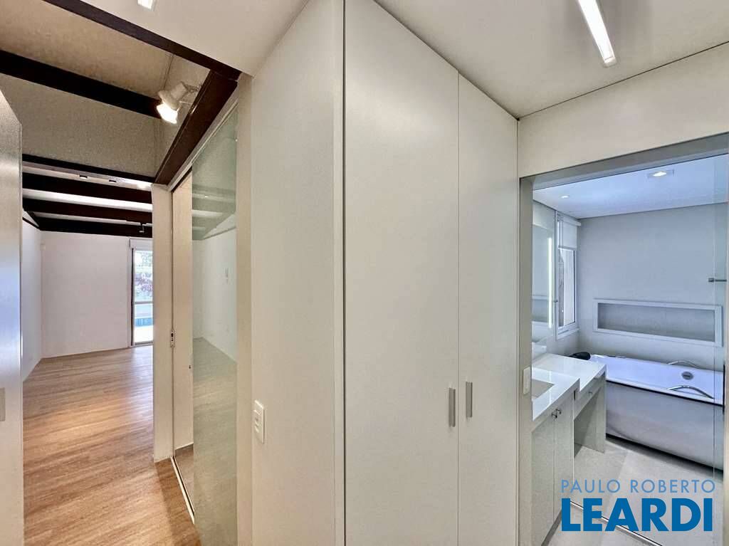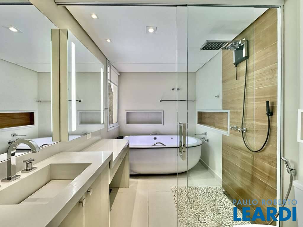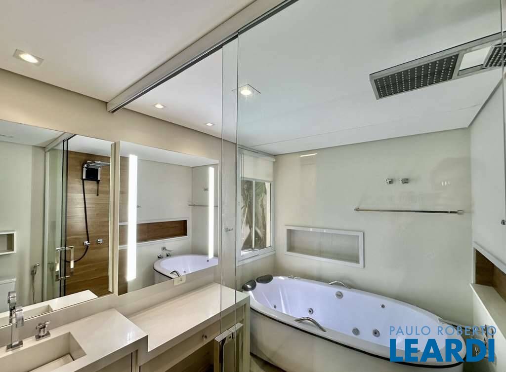3 suítes amplas com armários, sendo a máster com banheiro sr e sra (com camarim e banheira de hidromassagem com vista) e closet com sistema elétrico anti-mofo. Todas as suítes possuem saída para a piscina