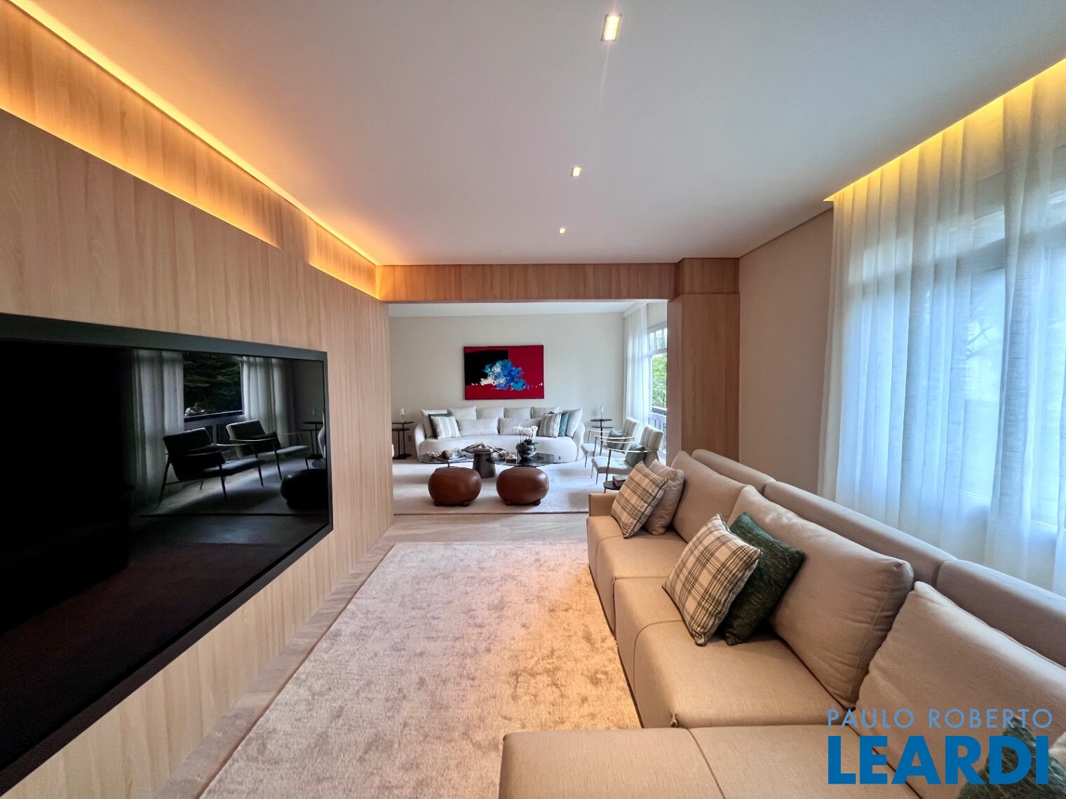 Com 148 m² muito bem distribuídos, o imóvel conta com uma sala ampla para dois ambientes. O terceiro dormitório foi integrado ao living, criando um elegante espaço de TV, além de um lavabo criado de forma inteligente no projeto.