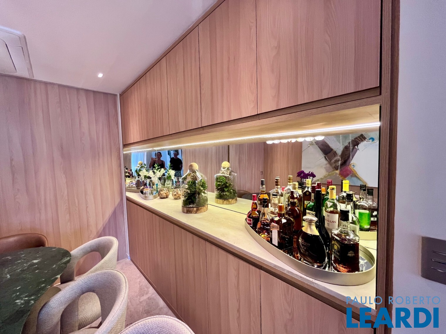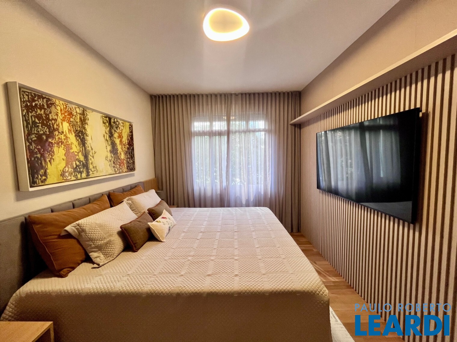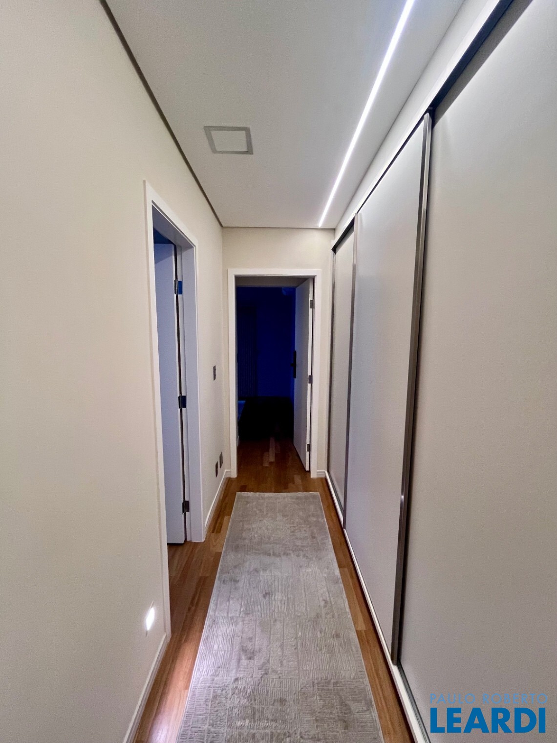 Na área íntima, corredor com excelente marcenaria leva à suíte master com closet. O imóvel conta ainda com armários planejados de alta qualidade em todos os ambientes.