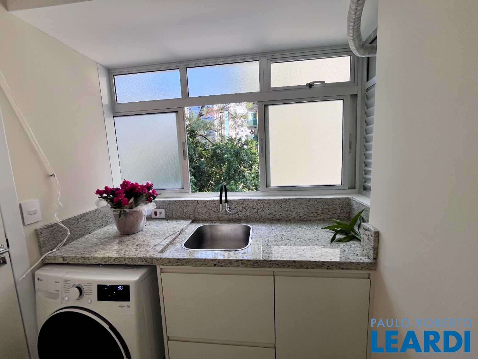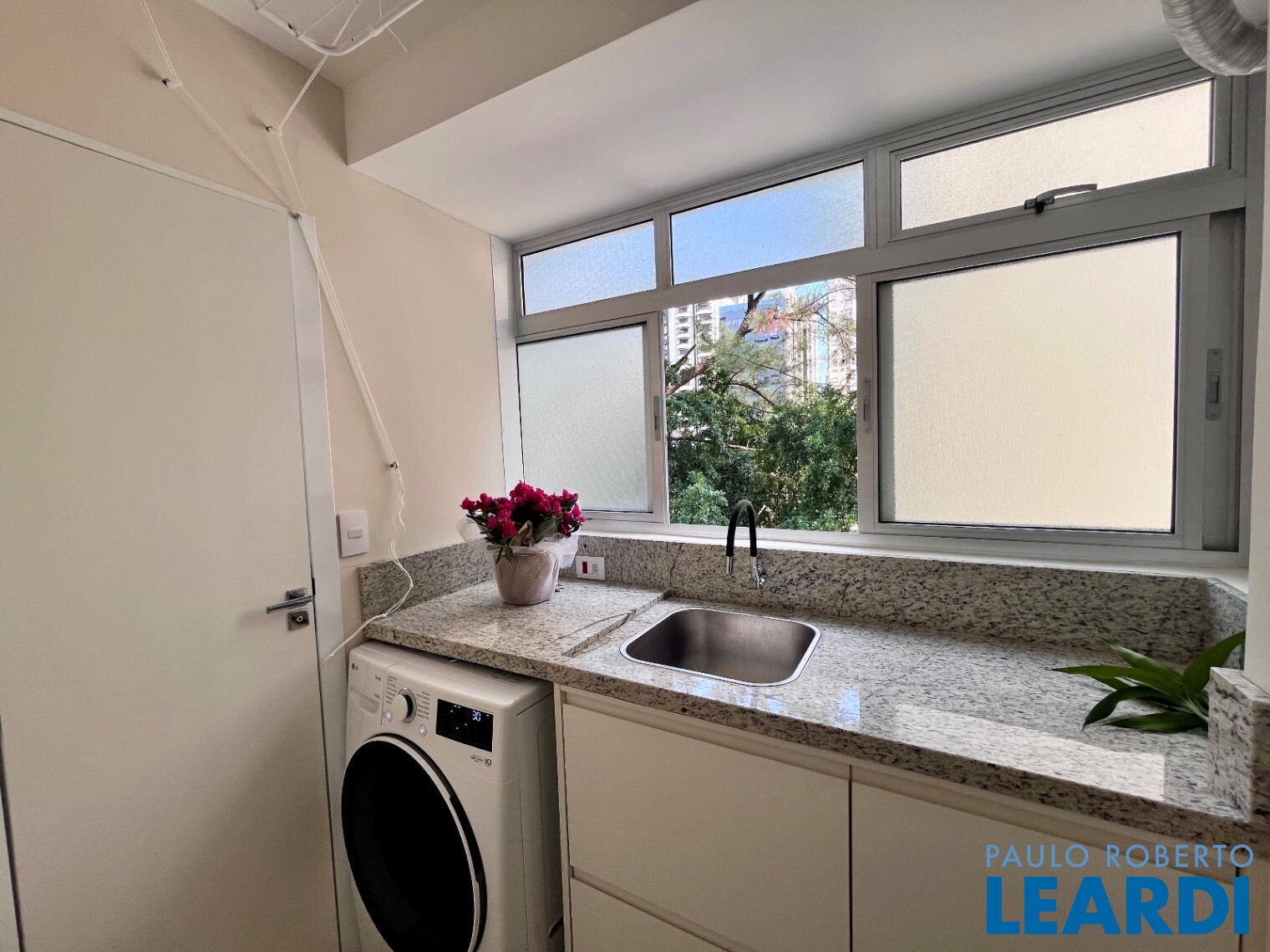 Lavanderia equipada com tampo em granito e lava e seca LG