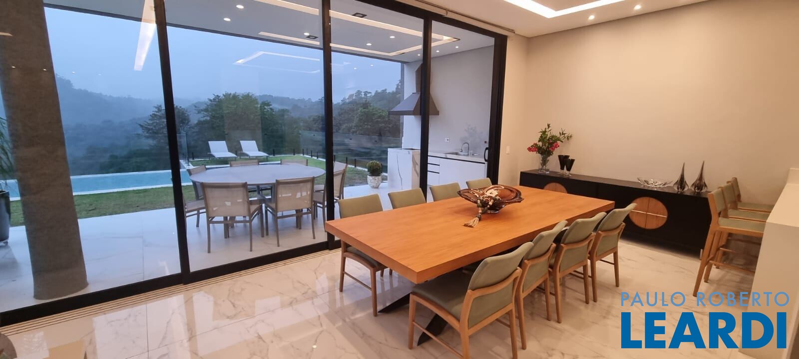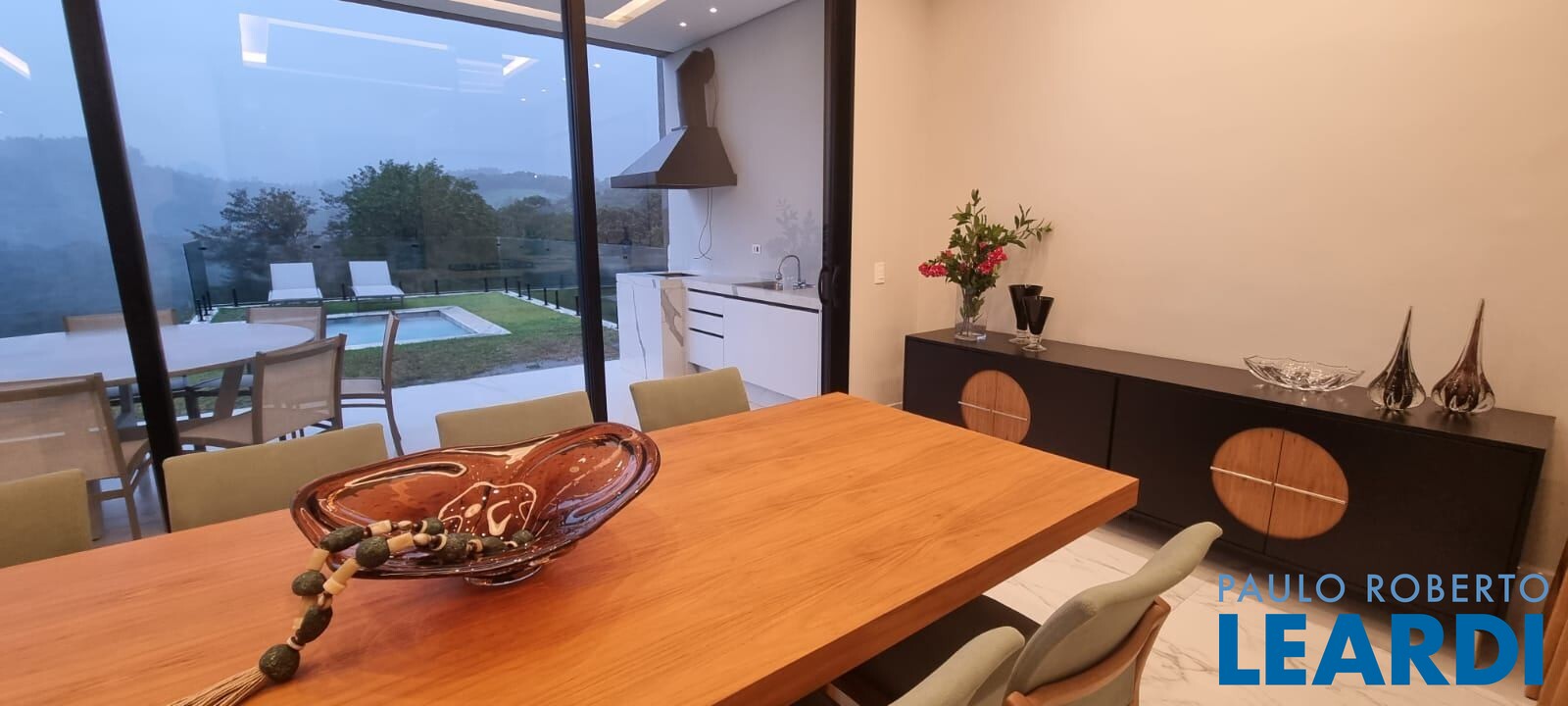 Na área de lazer, o destaque fica para o espaço gourmet integrado e a piscina com borda infinita, criando um cenário perfeito para momentos inesquecíveis com família e amigos. A casa ainda conta com infraestrutura para sauna e 4 vagas de garagem.