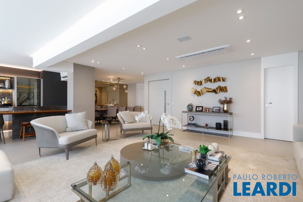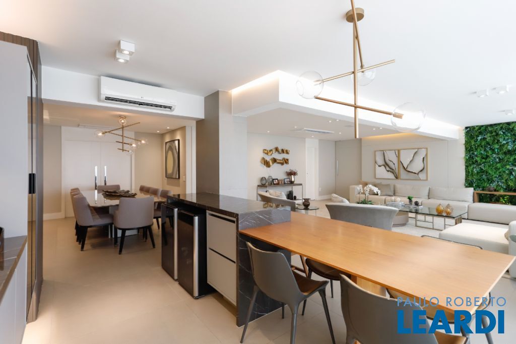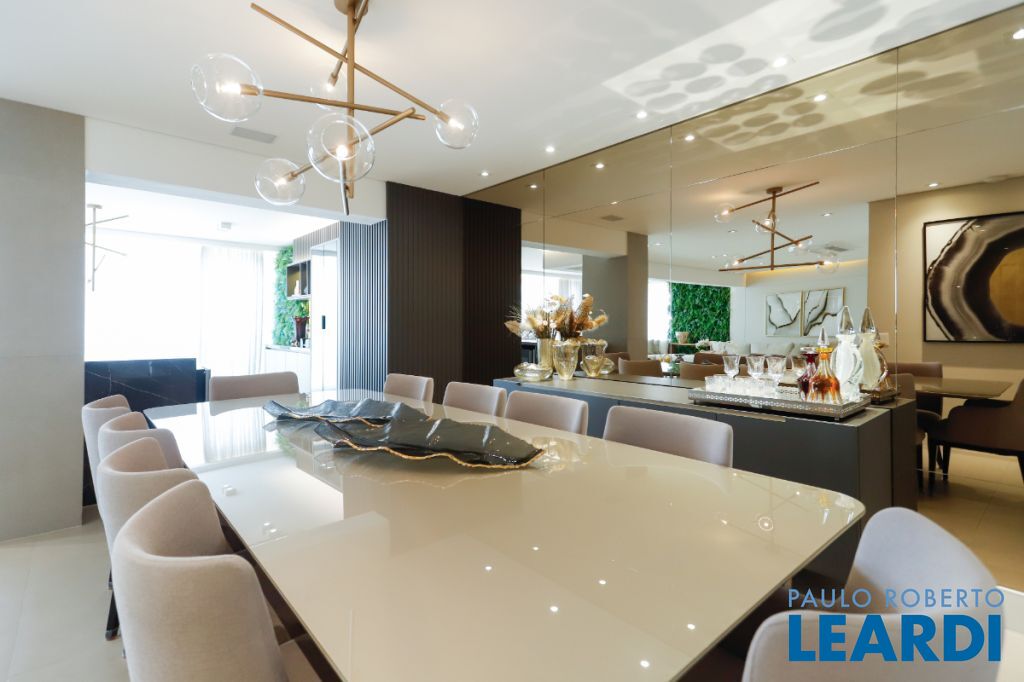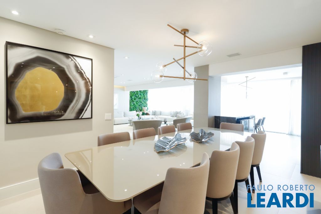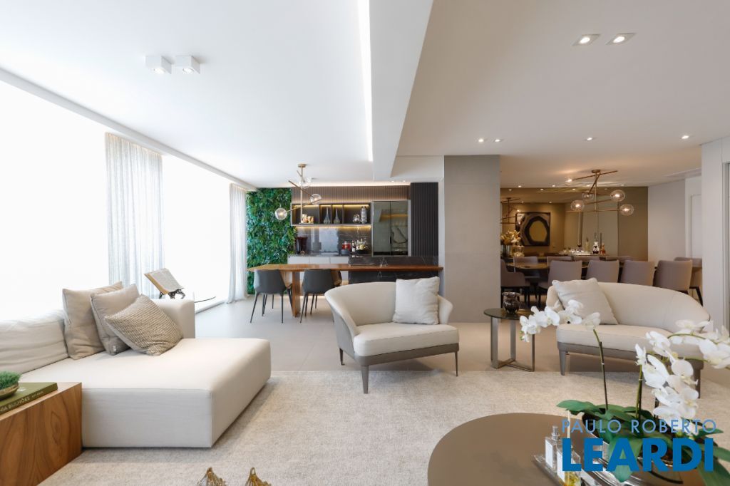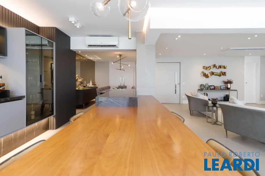 Com 241 m² de área privativa, o apartamento se destaca pelo seu projeto inteligente e pelos ambientes amplos, bem iluminados e integrados, criando uma atmosfera acolhedora e elegante em todos os espaços. Cada detalhe foi pensado para proporcionar funcionalidade no dia a dia e também para valorizar momentos especiais em família ou entre amigos. Ao entrar no imóvel, a sensação imediata é de amplitude e sofisticação. A área social conta com uma generosa sala de estar e jantar, que se conecta de forma harmoniosa à área externa, criando um ambiente perfeito para receber convidados ou simplesmente desfrutar de momentos de relaxamento. Um dos grandes destaques é a ampla varanda gourmet, um espaço ideal para confraternizações, almoços de final de semana ou noites especiais. Integrada ao living e com excelente iluminação natural, ela proporciona um ambiente agradável e convidativo para todas as ocasiões. A área íntima do apartamento foi projetada para garantir conforto e privacidade para toda a família. São 3 dormitórios espaçosos, com excelente distribuição e ventilação natural, além de 5 banheiros e 3 lavabos, proporcionando praticidade e comodidade tanto para os moradores quanto para visitas. A cozinha oferece espaço generoso e funcionalidade, ideal para quem aprecia cozinhar e receber. Os ambientes de serviço também foram bem planejados, garantindo organização e praticidade na rotina. Outro diferencial importante são as 3 vagas de garagem, que trazem comodidade e segurança para os moradores, além de facilitar a rotina em uma cidade dinâmica como São Paulo. O condomínio oferece uma infraestrutura completa, pensada para promover qualidade de vida e lazer se1903
